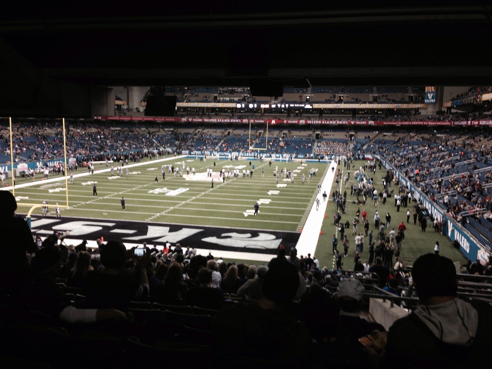 Thanks to the Alamo Bowl organization, and to Vet Tix! Very special thanks to both teams for a fantastic game. So much fun, the fan spirit was incredible, the bands were terrific. The flag ceremony was moving.