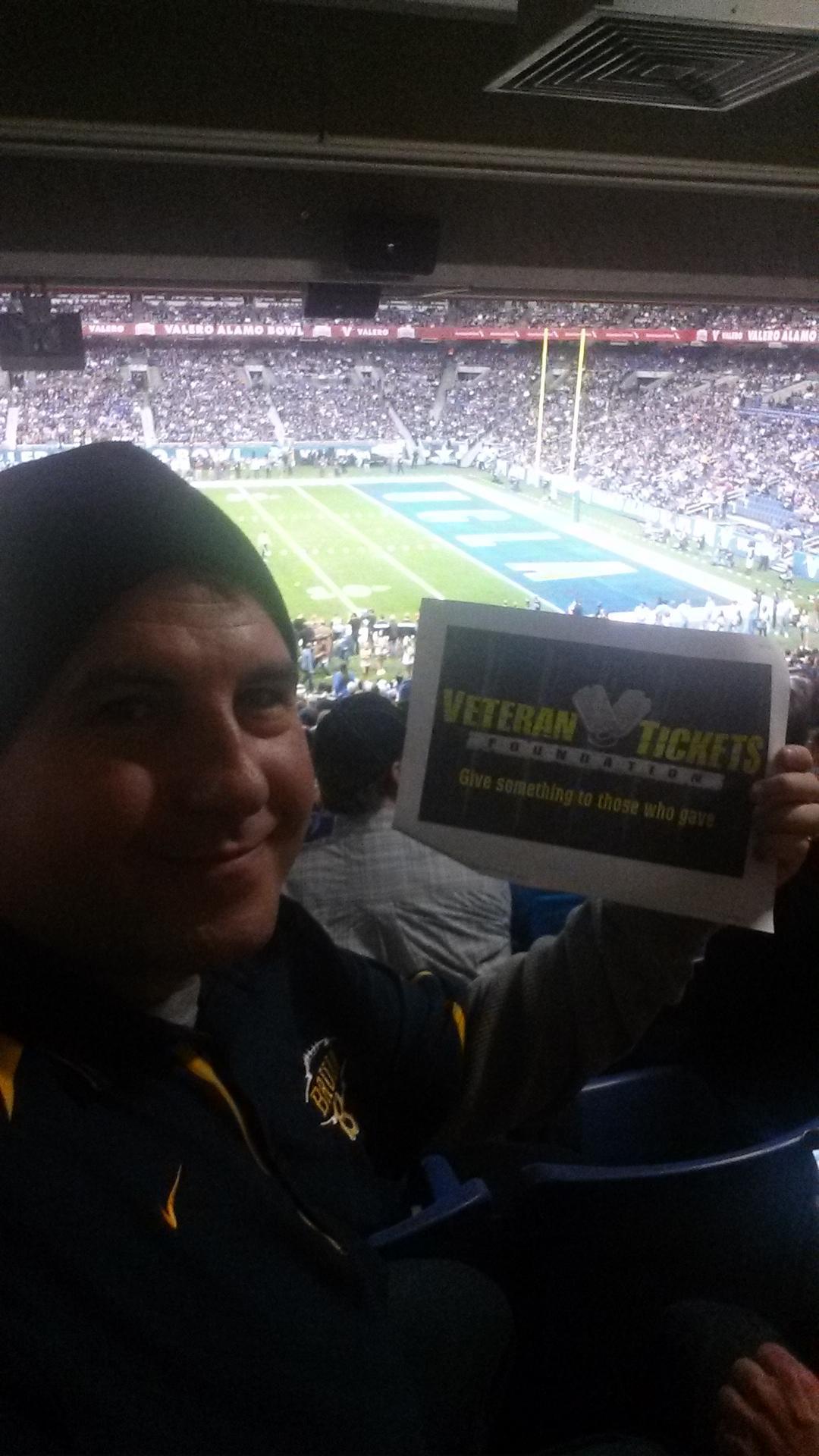 Thank you to the Alamo Bowl and Veteran Tickets foundation for the tickets to the game. Me and my family enjoyed the game