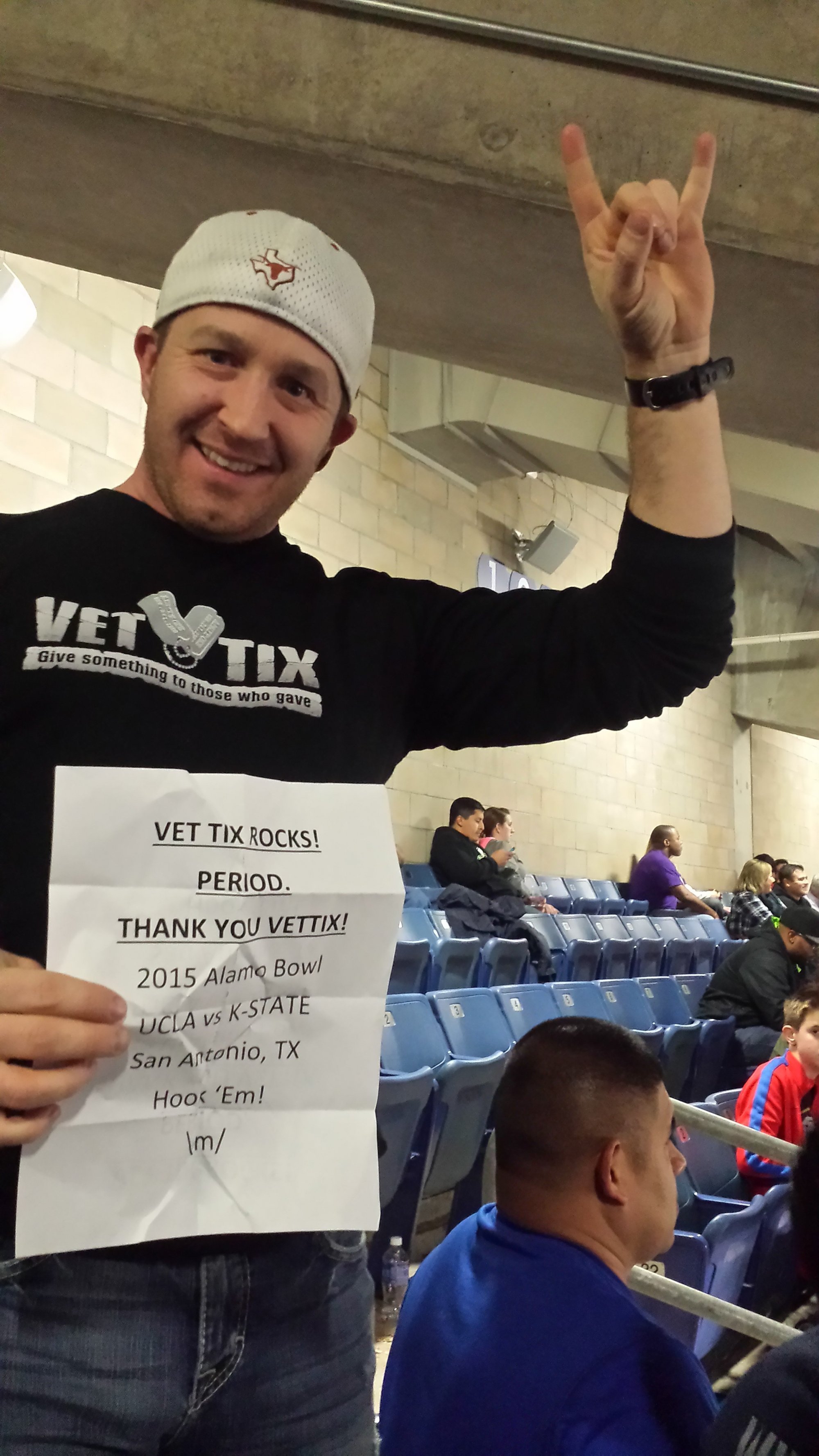 Thank you, Alamo Bowl. What a great game it was even though my team wasn't playing in that particular game. I was able to bring two of my AF buddies to the game with me and introduce them to VetTix as well. I can't say enough good things about this organization and what they do for veterans.