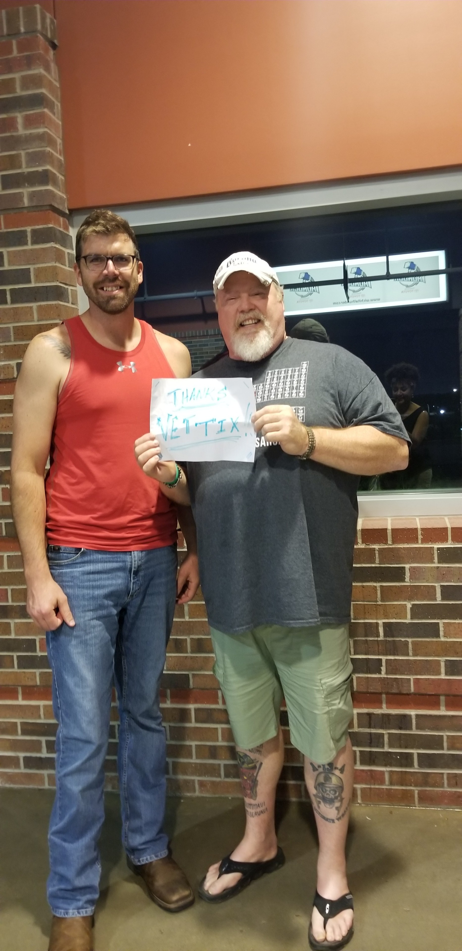 Thank you so much for your generous ticket donation! The seats were great and we had an amazing time! The friend I chose to take with me has been so good to me. Checking in on a regular basis and making sure I'm doing ok. It was so nice to be able to do something for her this time, thanks to you! Thank you AEGAEGINTRUST for supporting VetTix and our community!