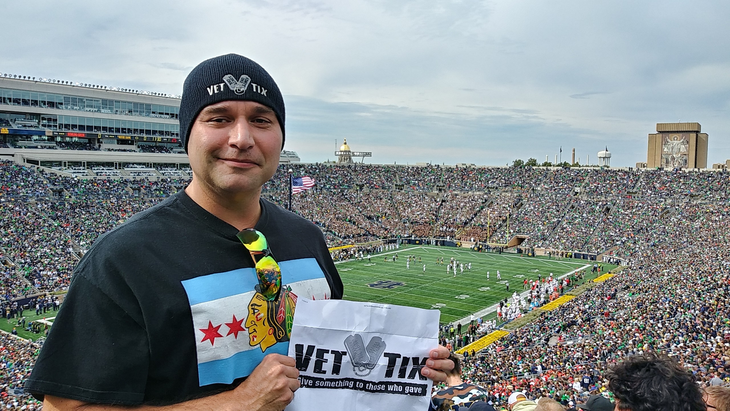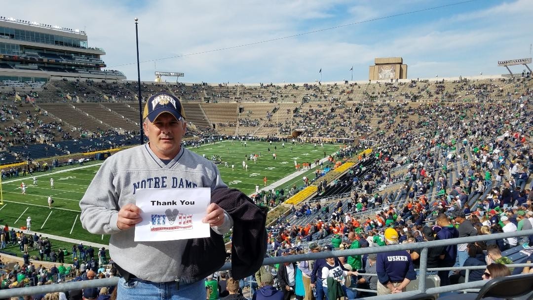 Thank you Notre Dame and Vet Tix for the awesome experience. Walking around campus everyone (employee's) had such a positive vibe and made you feel so welcome. It was a pleasure to witness the game day traditions that make Notre Dame such a special place. So looking forward to this experience again in the near future. Thank you again Notre Dame for your support to Veterans. God, Country and Notre Dame!!!
