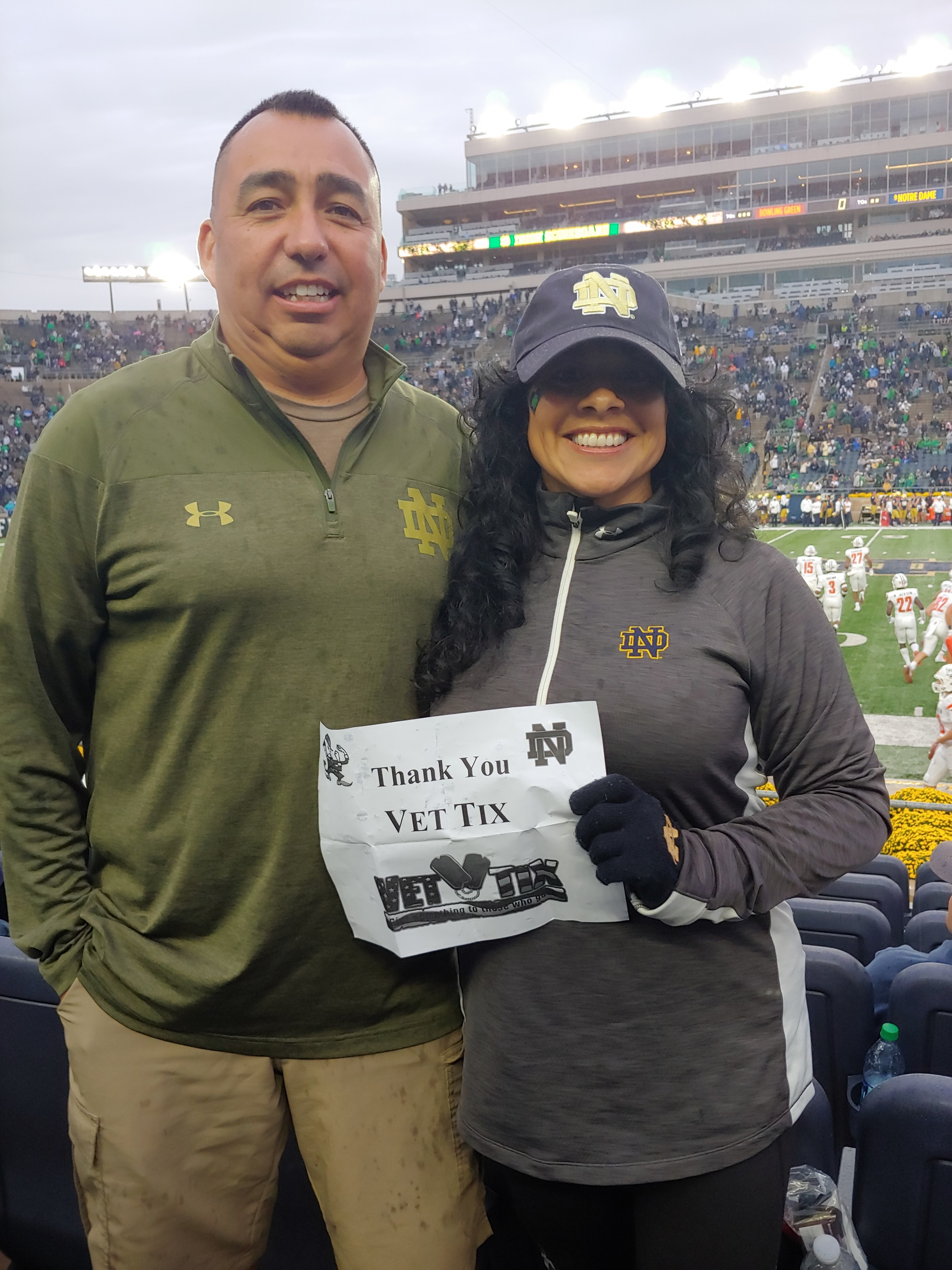 Thank you to VetTix and to the University of Notre Dame. We had an outstanding time and really enjoyed being around other Veterans.