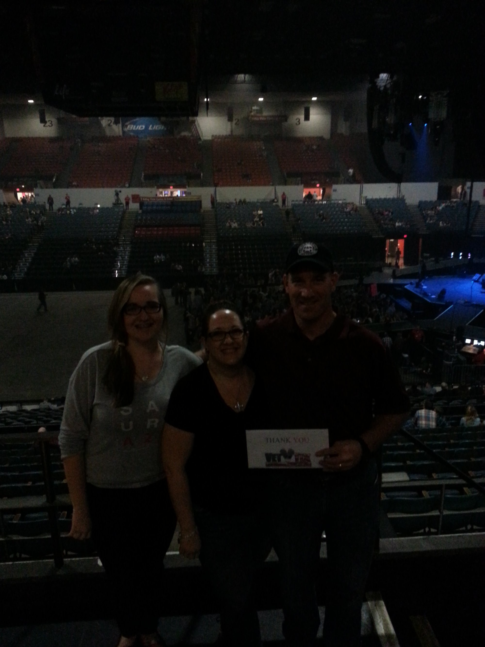 Thank you to the generous donors, and to the wonderful people at Vettix for the tickets to the Eric Church concert at the Valley View Casino Center in San Diego. What a great evening spent with my family enjoying good music. Thanks again.
