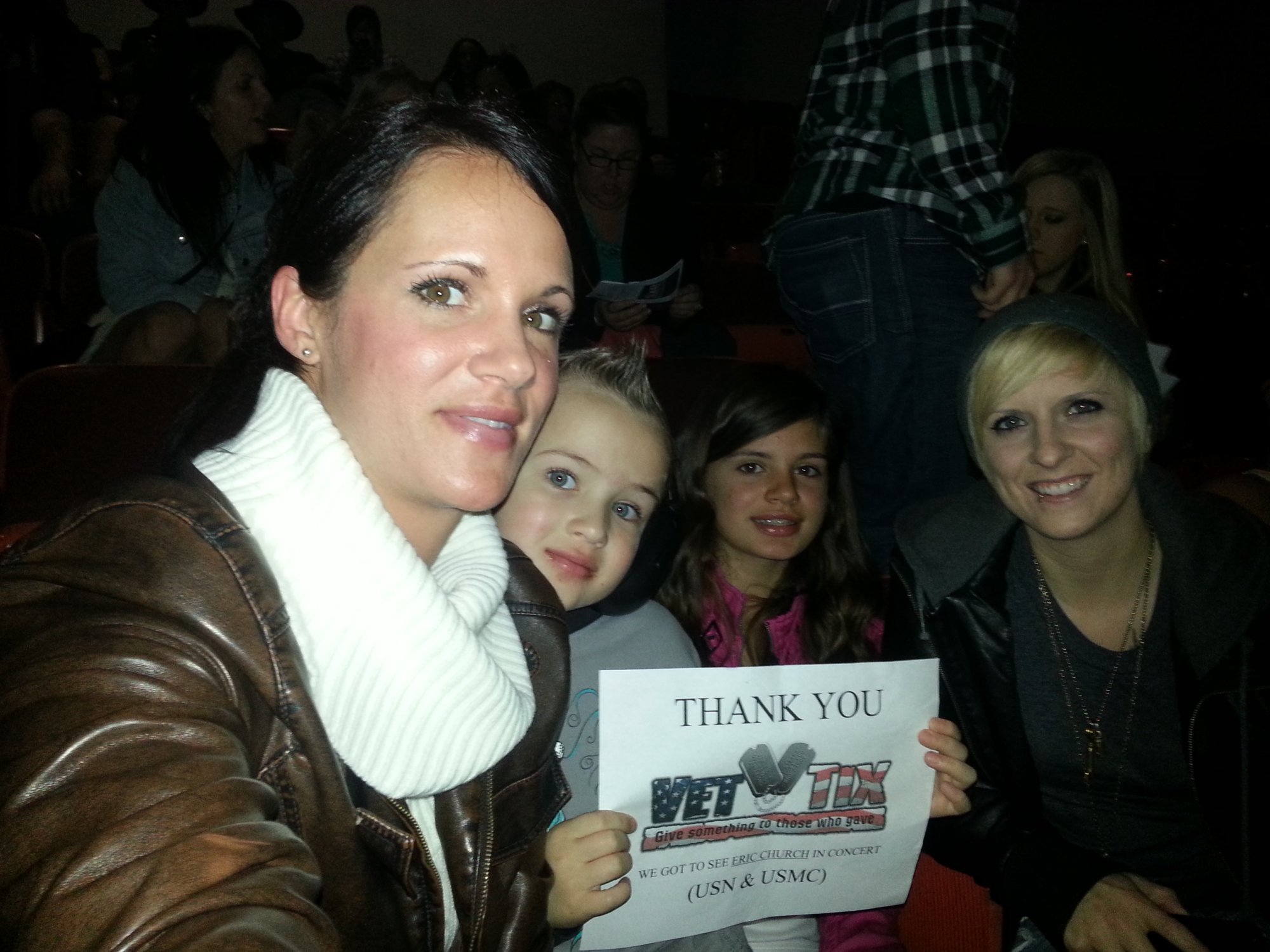 This was my children's first concert they had a blast. The crowd around us were all Vettix winners and were all super fun! The venue was easy to navigate and lines were not bad at all! We saw Halestorm and Eric Church. The seats were perfectly situated and we had a view of the entire stage. Being a dual military family we try make awesome memories and this one made the books!!!!! Thank you Vettix!!!!