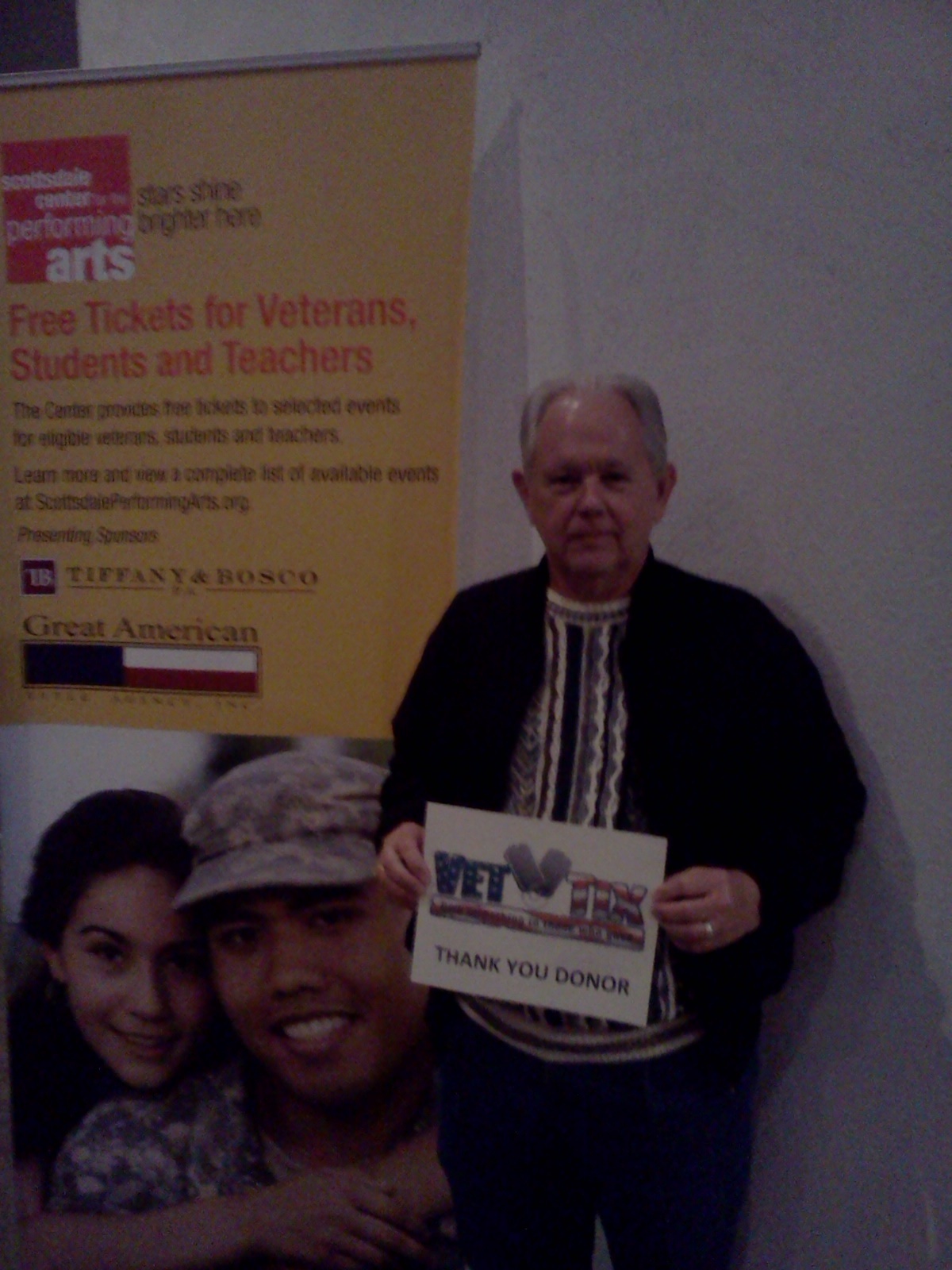 Scottsdale Center for the Performing Arts, I can't thank you enough, as a vet, for giving me the opportunity to enjoy theatre. I've grown a newfound love for theatre and it wouldn't be possible for me to enjoy it without your generous support to VetTix. I totally enjoyed the performance of The Indian Wrestler last night with my friend. The story, the music, and the influence to a different culture was very satisfying. Thank you again Scottsdale Center for the Performing Arts for your support of veterans and of this great organization that is Vettix. I couldn't enjoy performing art without you. Thank you.