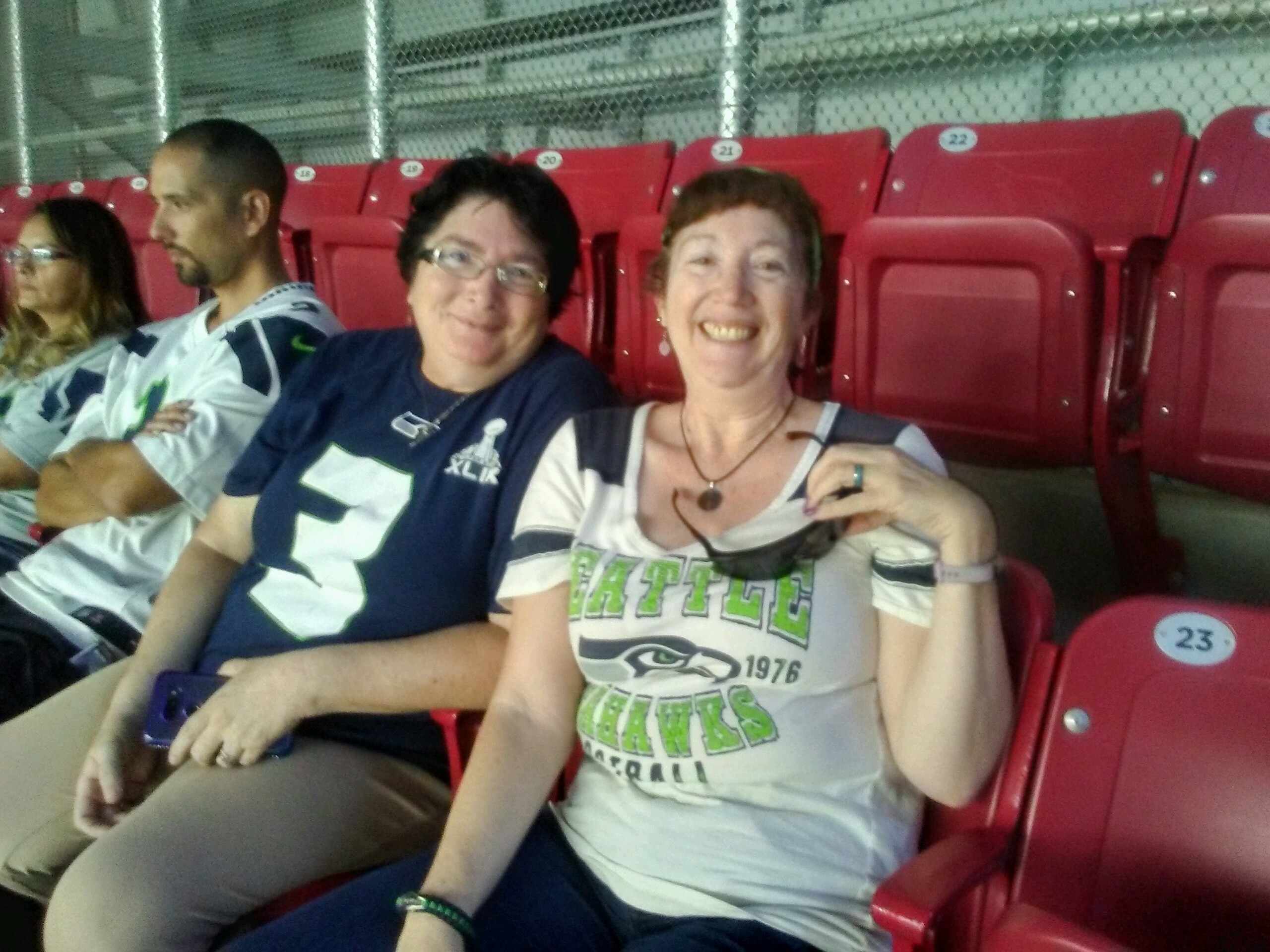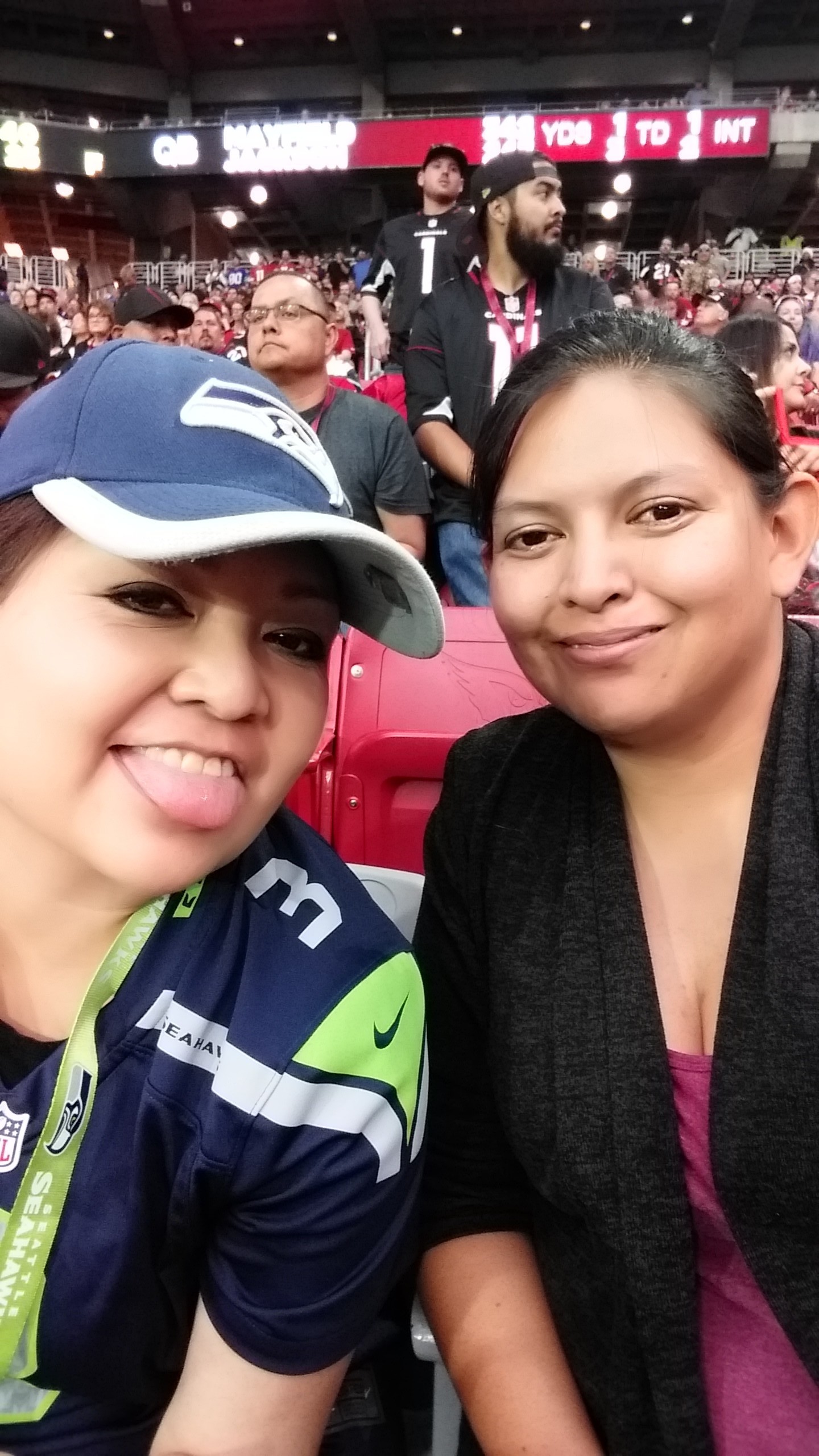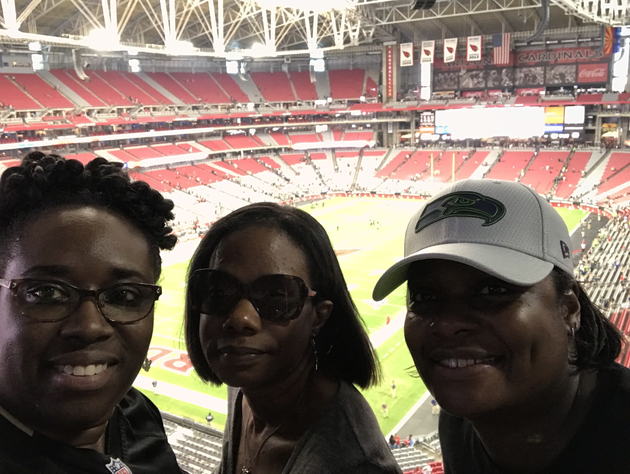 I want to thank the Arizona Cardinal - NFL and the two donors who donated their tickets, so that my sister and I as well as a friend could enjoy this once in a lifetime opportunity to see an NFL game. I was born and raised in WA, but live in AZ right now, so it was even better to see both my teams play on the same day. It was a beautiful day, and the game was exciting and we all had such a good time. I live in Tucson, and my sister who is also a vet lives in Maricopa, so it is rare when we can get together. This game was an opportunity for us to see each other and spend some quality sister time.