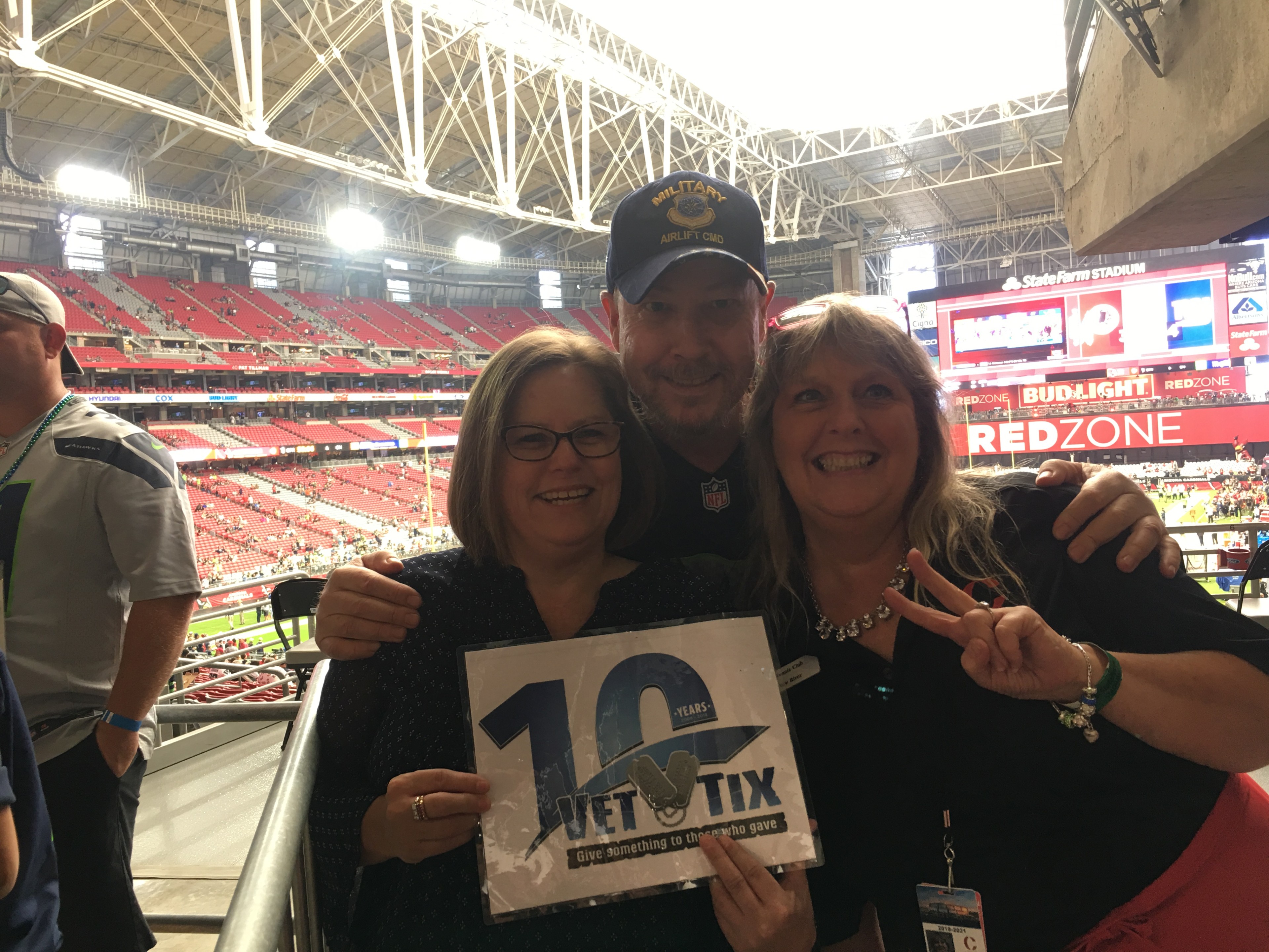 Thank you Arizona Cardinals, NFL, and ticket donors! We had the Best Time at the game and ran into an old Air Force buddy from 35 years ago. Wow! What a great day.