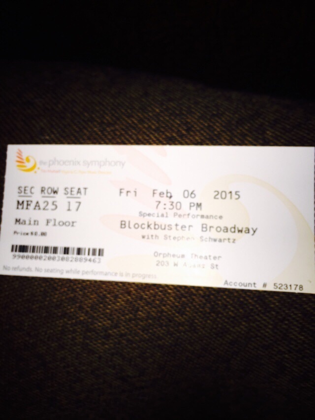 Thank you to the Phoenix Symphony for donating tickets to Blockbuster Broadway. It was an impressive lineup of performers and without a doubt one of the best musical shows I have ever heard. Thanks again!!!