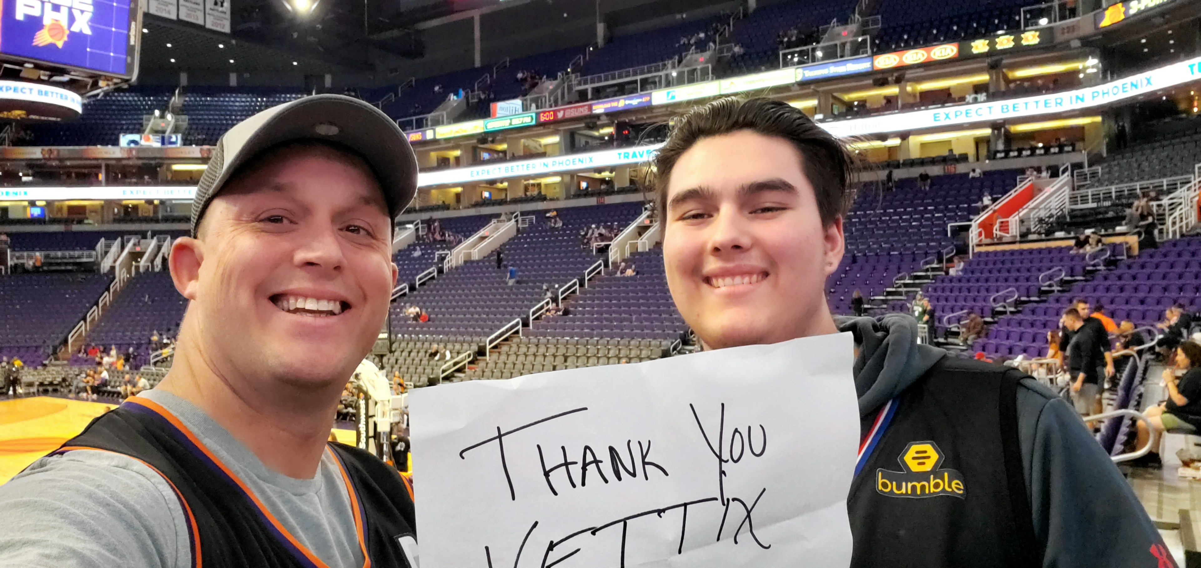 Thank you Phx Sun's and Vettix for the awesome seats. We had a great time. Thank you for all you do for us vetera lons.