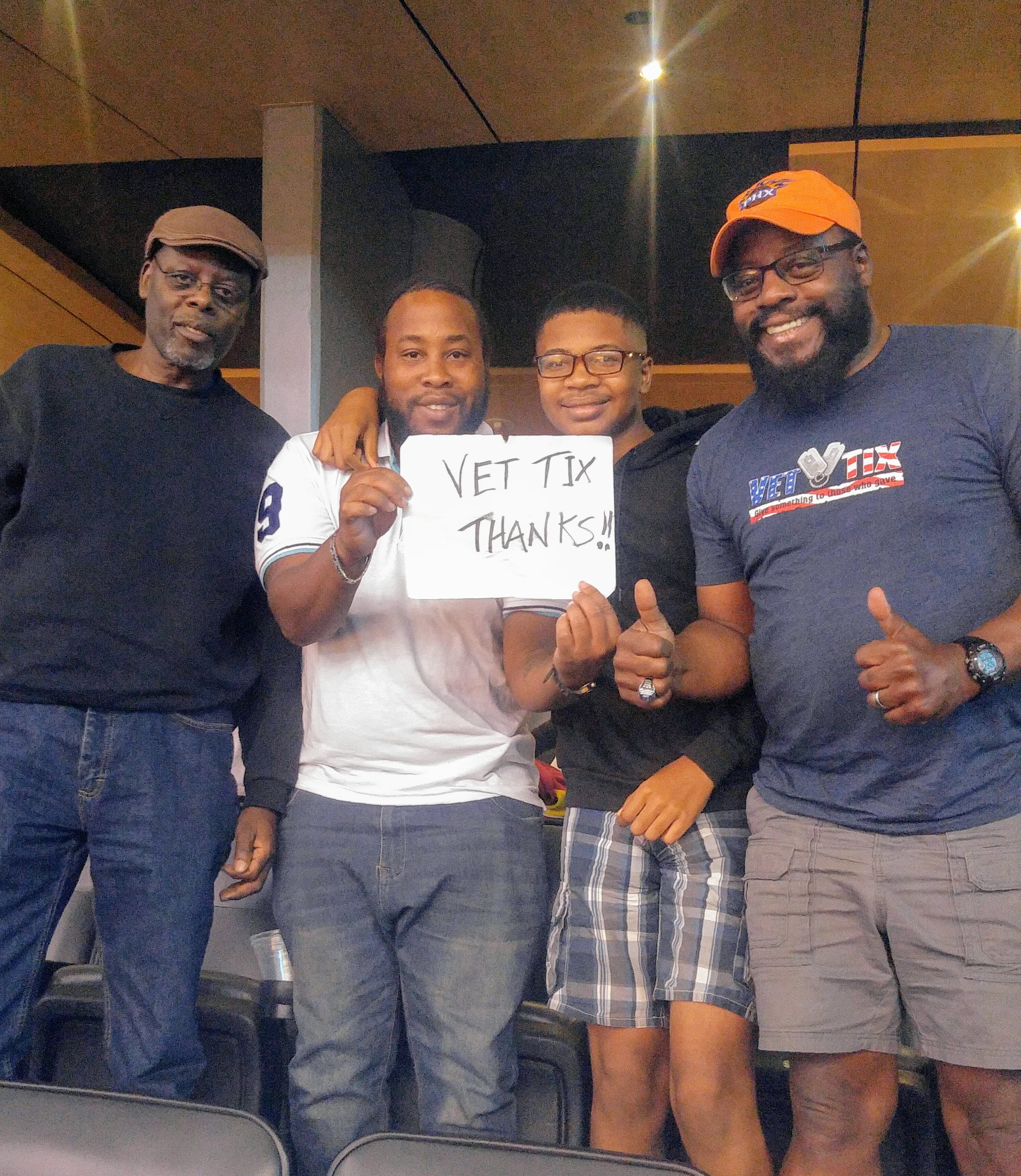 I would like to Thank the Phoenix Suns on donating our tickets to game. We had a great and loud time. Also would like to Thank Vet Tix for free Tickets to game.