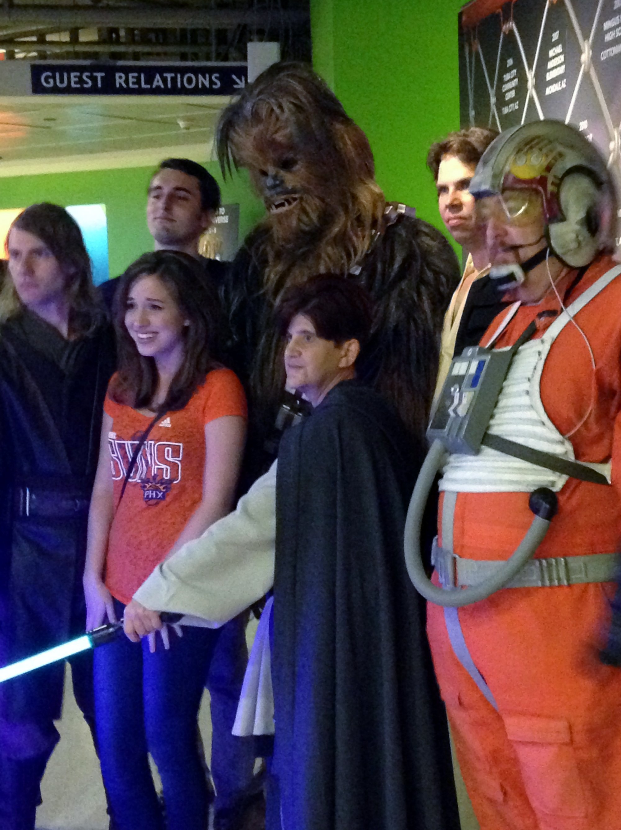 Thank you Vet Tix and the Phoenix Suns, it was a great game but a tough loss for our Suns. My wife & I enjoyed seeing the new players recently obtained via trades. It was also Star Wars night and although we are not in this picture, my wife snapped one of Chewbacca & friends.