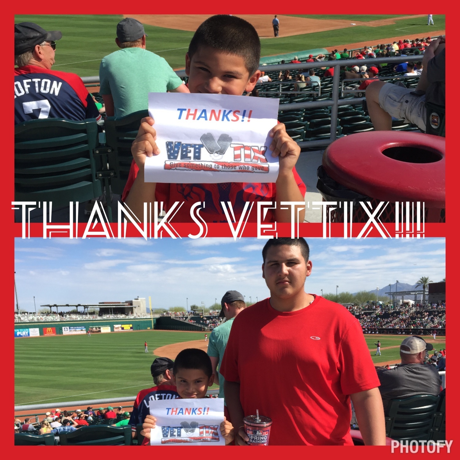 Thanks Vet Tix my nephews and I had fun at the ball game they enjoyed the game while on spring break. THANKS VET TIX