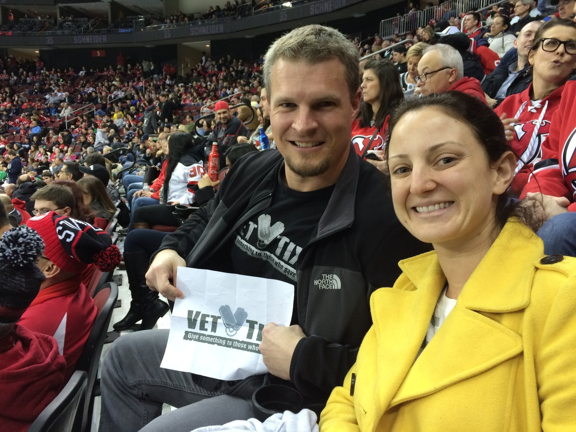 Thank you to the New Jersey Devils and Vet Tix for the tickets to the game. We had a great time. Thank you again.