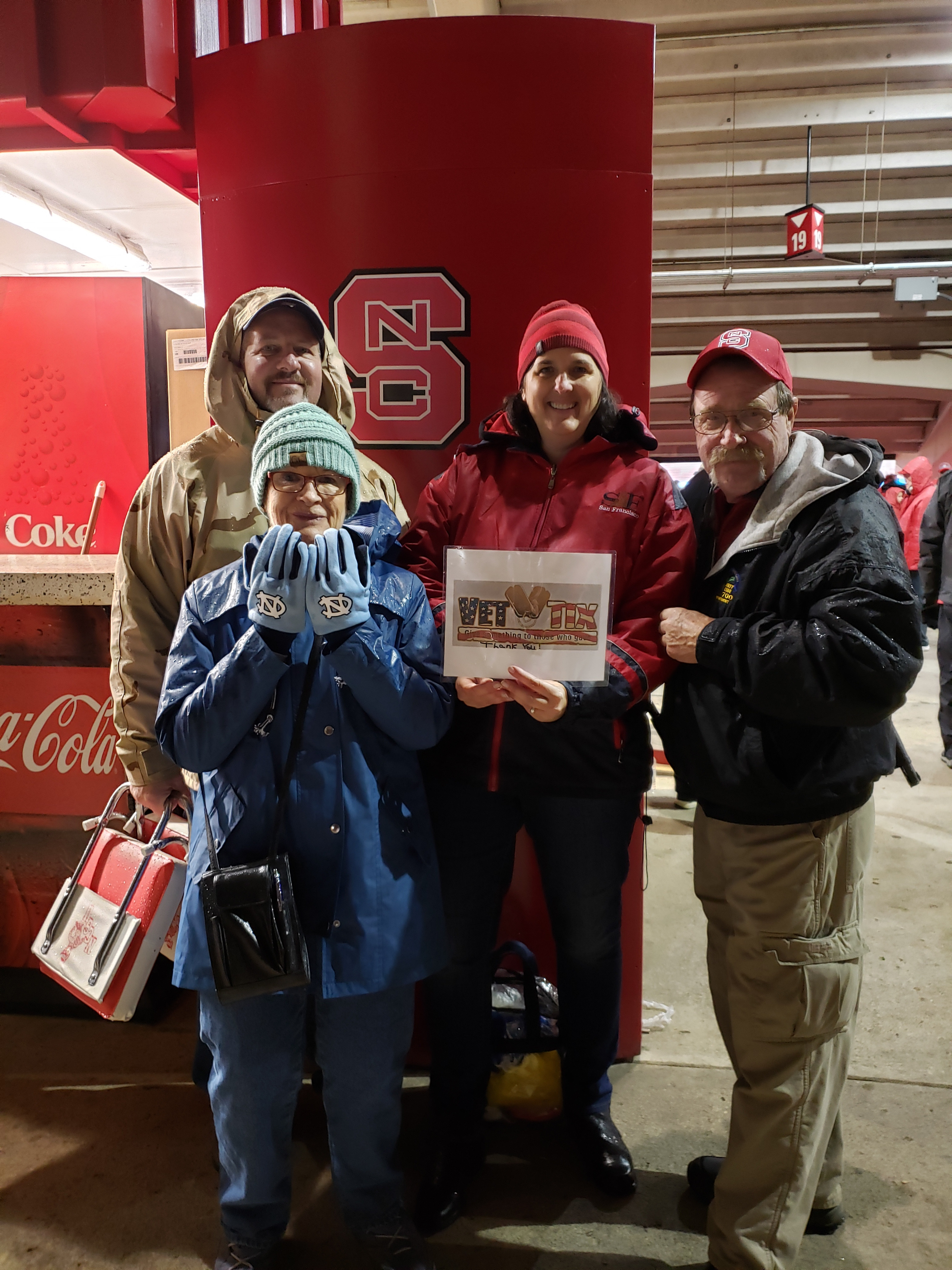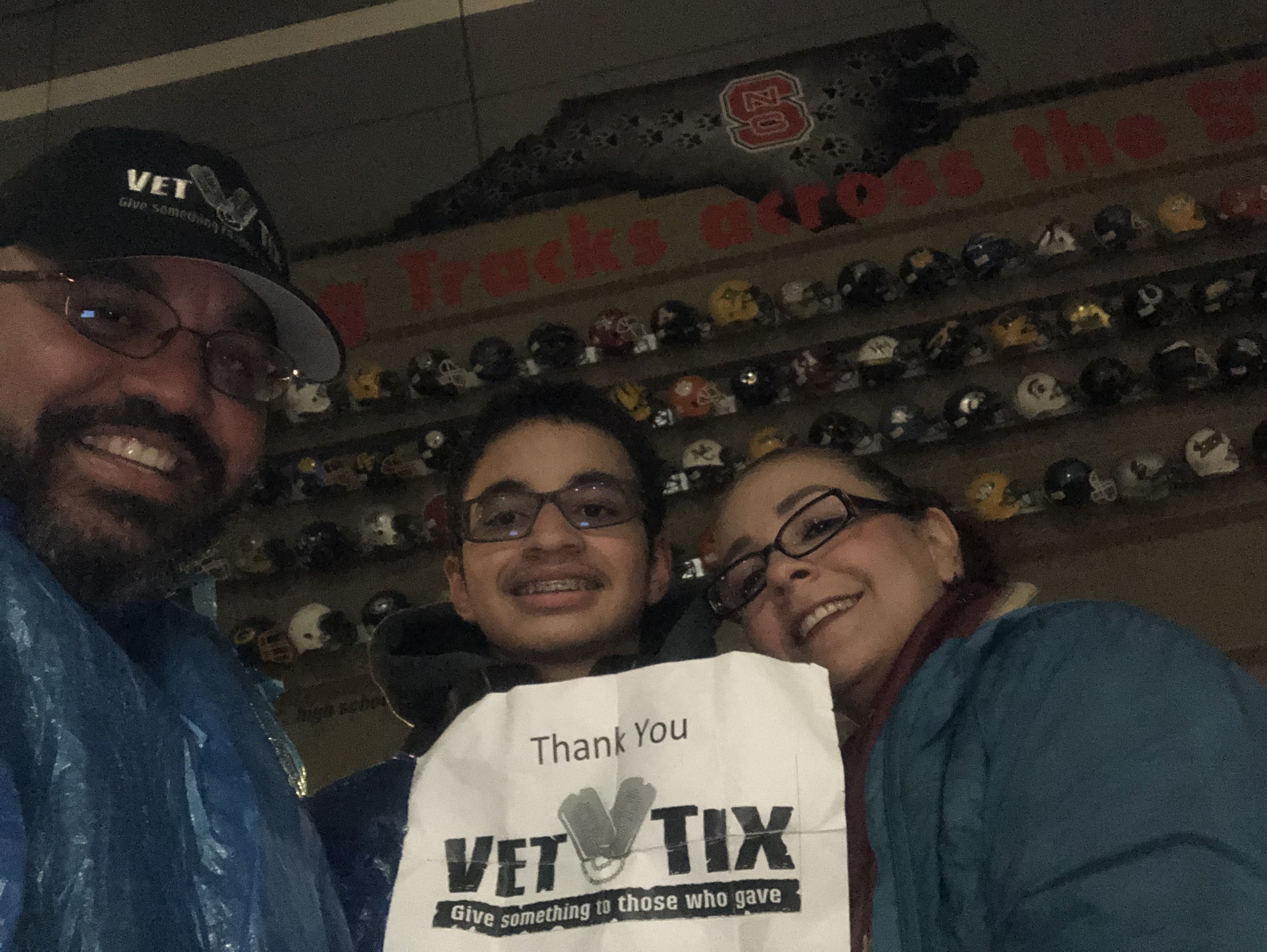I would like to say thank you for tickets to the game. It was wet and cold but it gave me the opportunity to spend time with my family at a game I had always wanted to attend. It left me with memories I'll never forget. Again thank you North Carolina State University for your donation for the veterans.