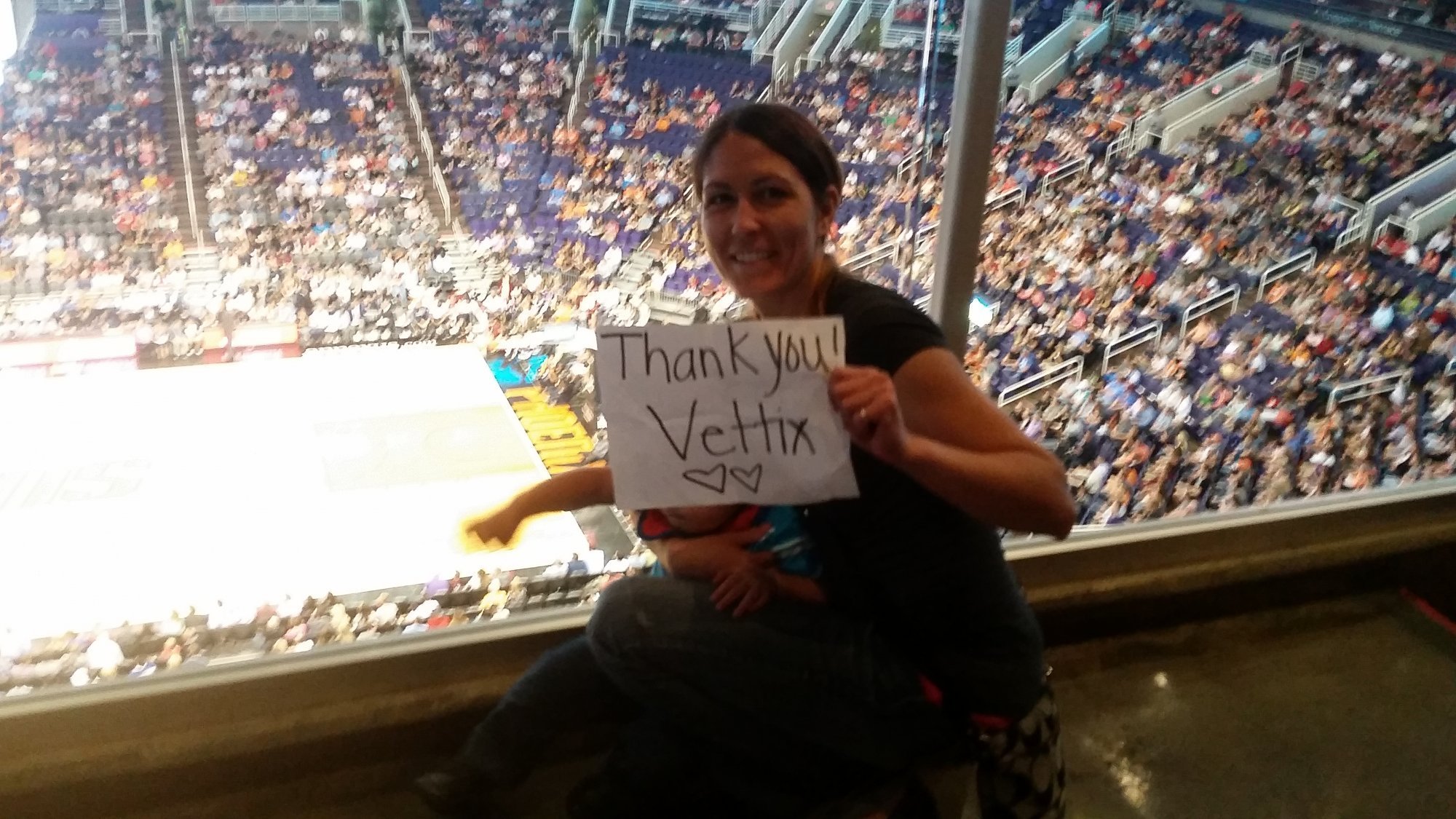 Thank you Vet Tix so much for giving me and my family the opportunity to watch a Suns game. This was never possible as a kid or an adult until I found Vet Tix! Thank you to the donors as well!