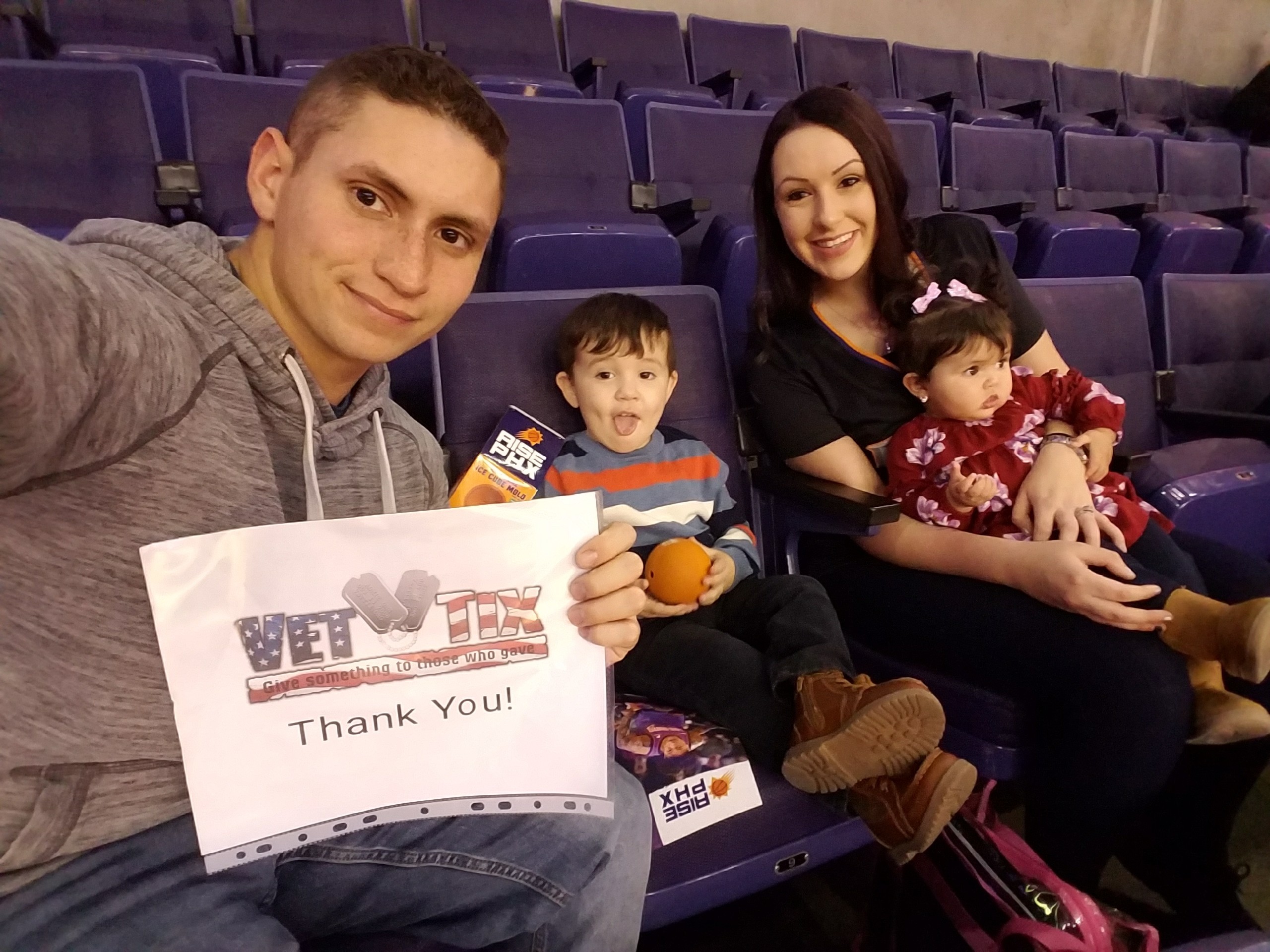 Thank you vet tix for this experience, being able to go to a suns basketball game. We even saw other vet tix users there. It was a great game and we had so much fun watching it together as a family.