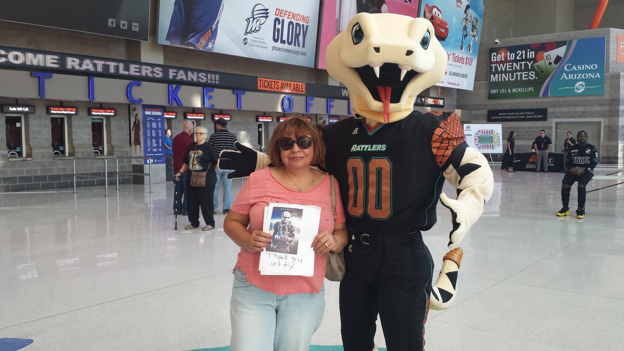 I want to thank the people who donated the tickets for me and my family through Vet Tix. I would also like to thank the Arizona Rattlers for hosting a very exciting event. thx