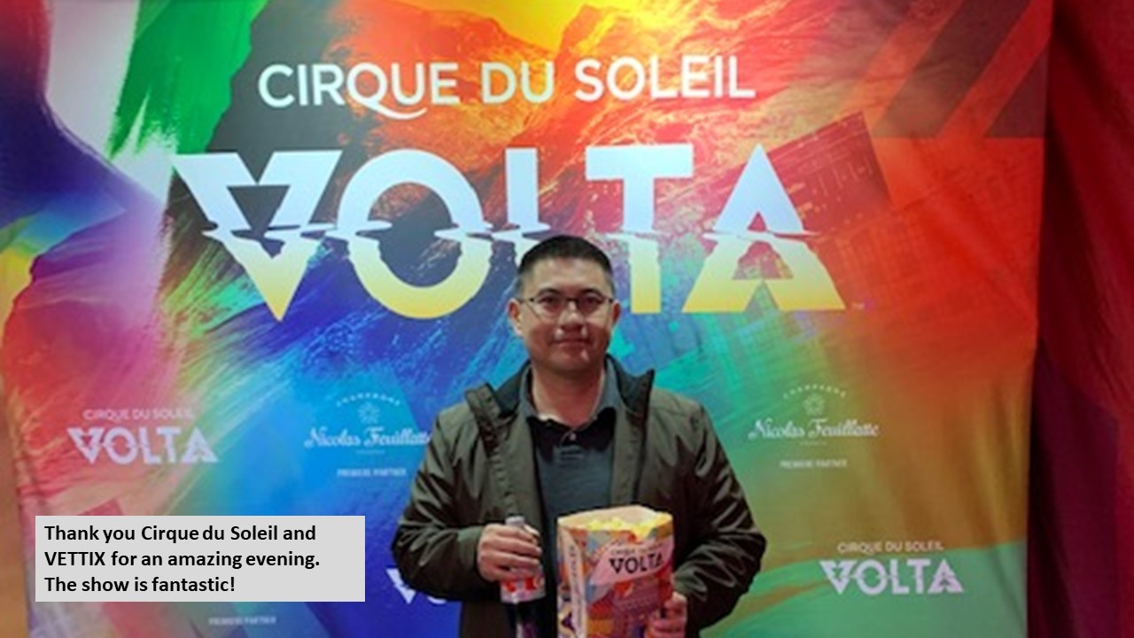 Thank you Vettix and Cirque du Soleil for the tickets. The show was fantastic as always. My wife and I enjoy going to your shows all time. Thank you again..