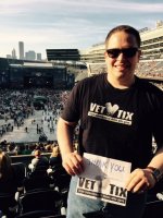 THANK YOU to Vet Tix and The Messina Group for our Kenny Chesney tickets! My wife Candice, is an Air Force Veteran and I am a Coast Guard Veteran. We had Lisa Dent, morning personality for US99 in Chicago, hold the sign because she has a big heart for Veterans! Thank you again, we had a GREAT TIME! Sean and Candice