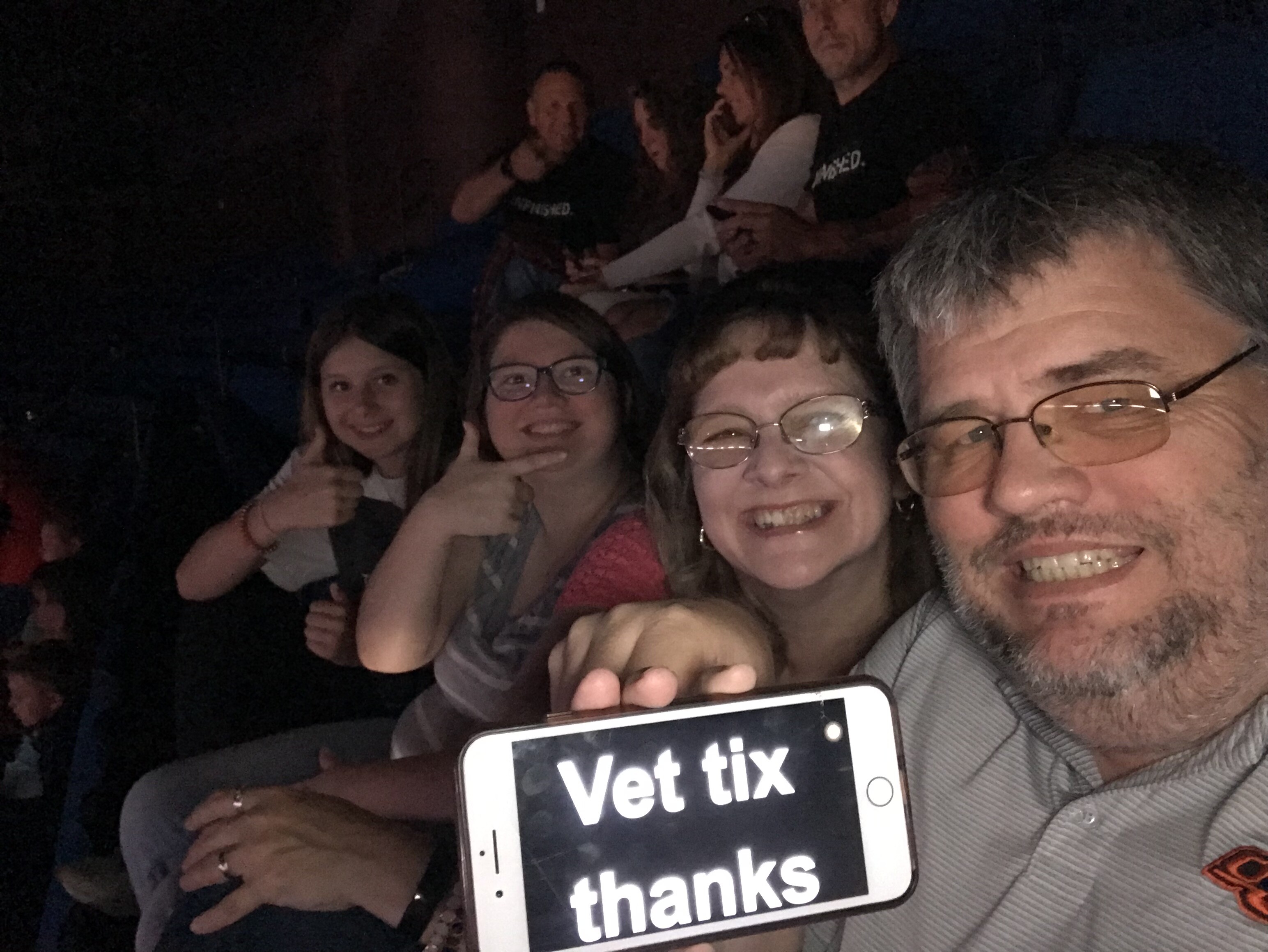 We would like to thank the donors for the tickets. These guys put on a awesome show. Thank you for a great evening.
