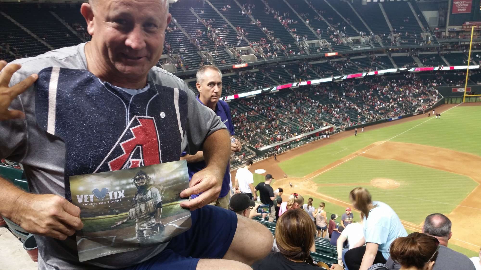 Great Game, Great seats. I took a dozen pictures for Vet Tix and none looked good. I'll have to go again...Thank you Vet Tix and the Dbacks