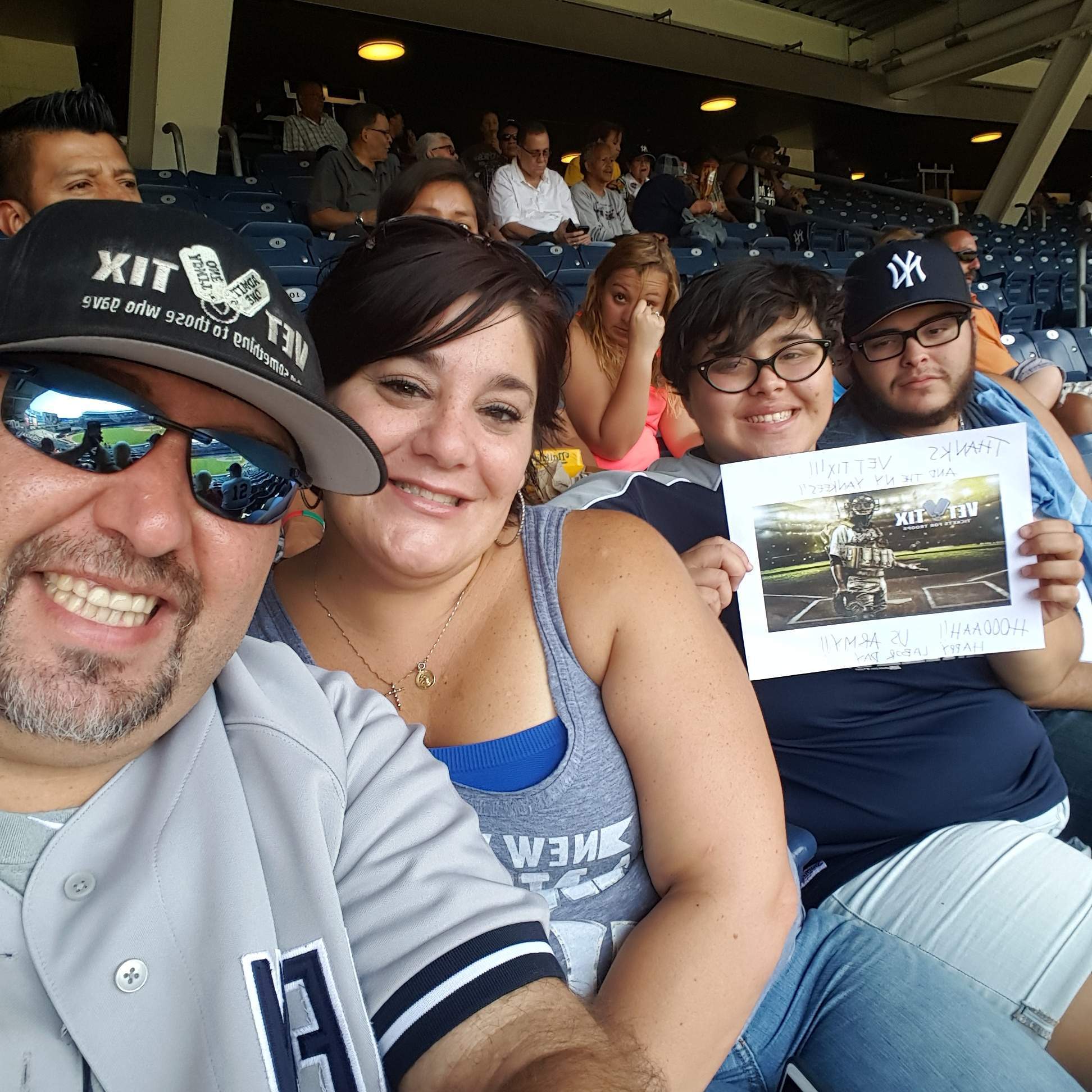 I want to thank the New York Yankees, vettix.org and the individual donor that provided me with the tickets to the game. I feel I am very blessed with the opportunity to serve my country and now being able to reap the rewards and benefits of my service.