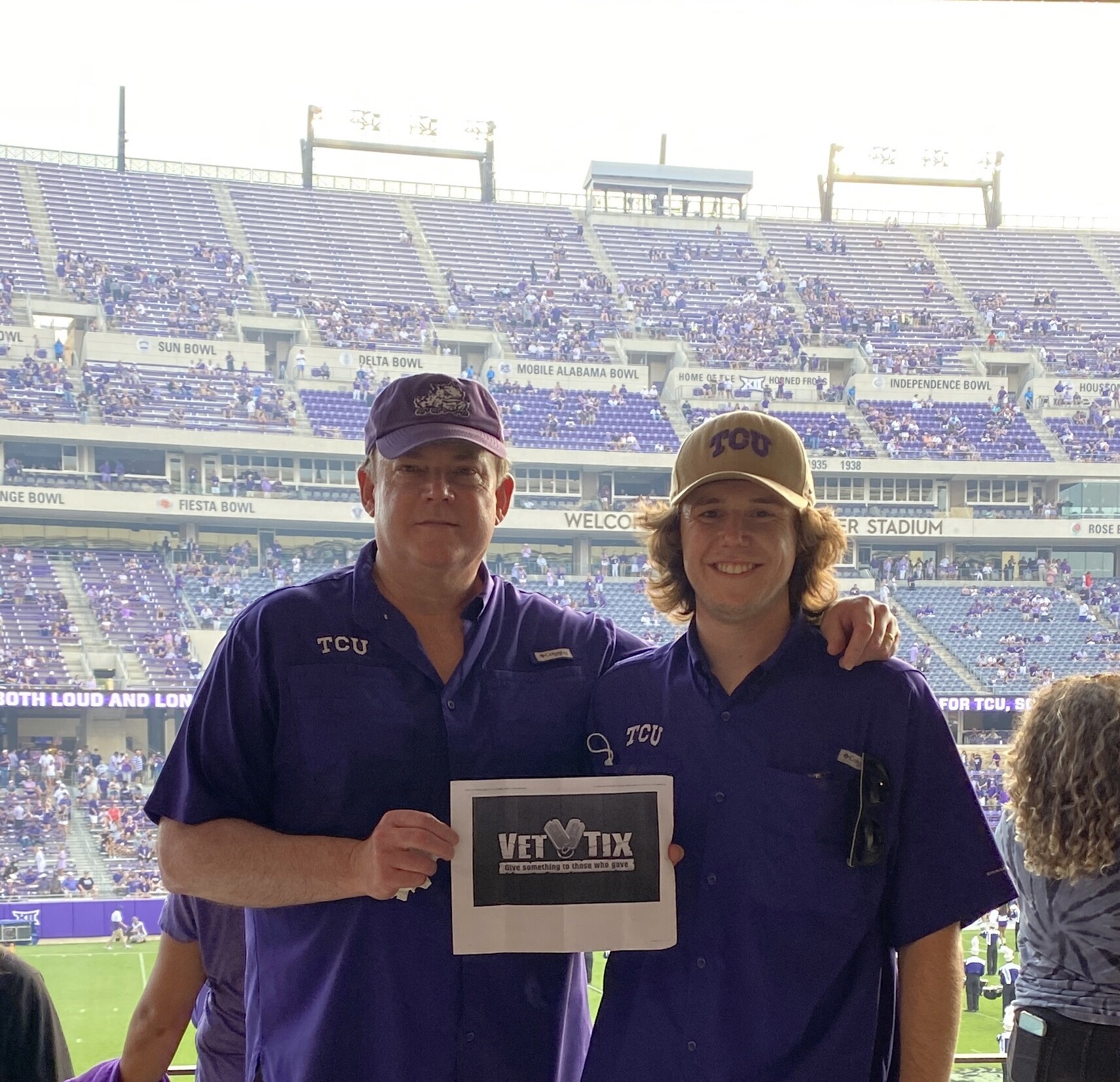 My girlfriend and I would like to express our gratitude for these amazing tickets! Thank you so much to the amazing donors and Vettix for allowing me to experience my first football game ever! Thank you once again and Go Frogs!!