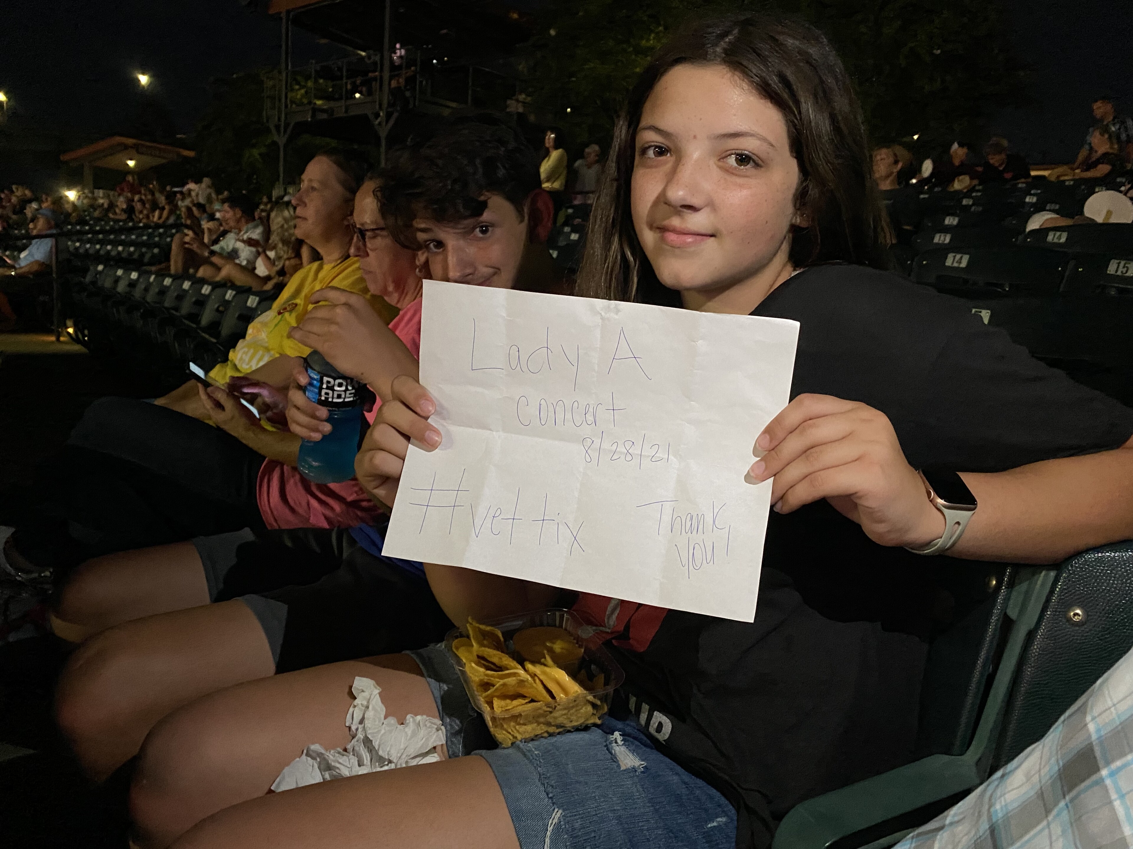 Thank you Live nation for giving us the opportunity to go to the Lady A concert. Our family had a wonderful time. It was great to hear live music again.