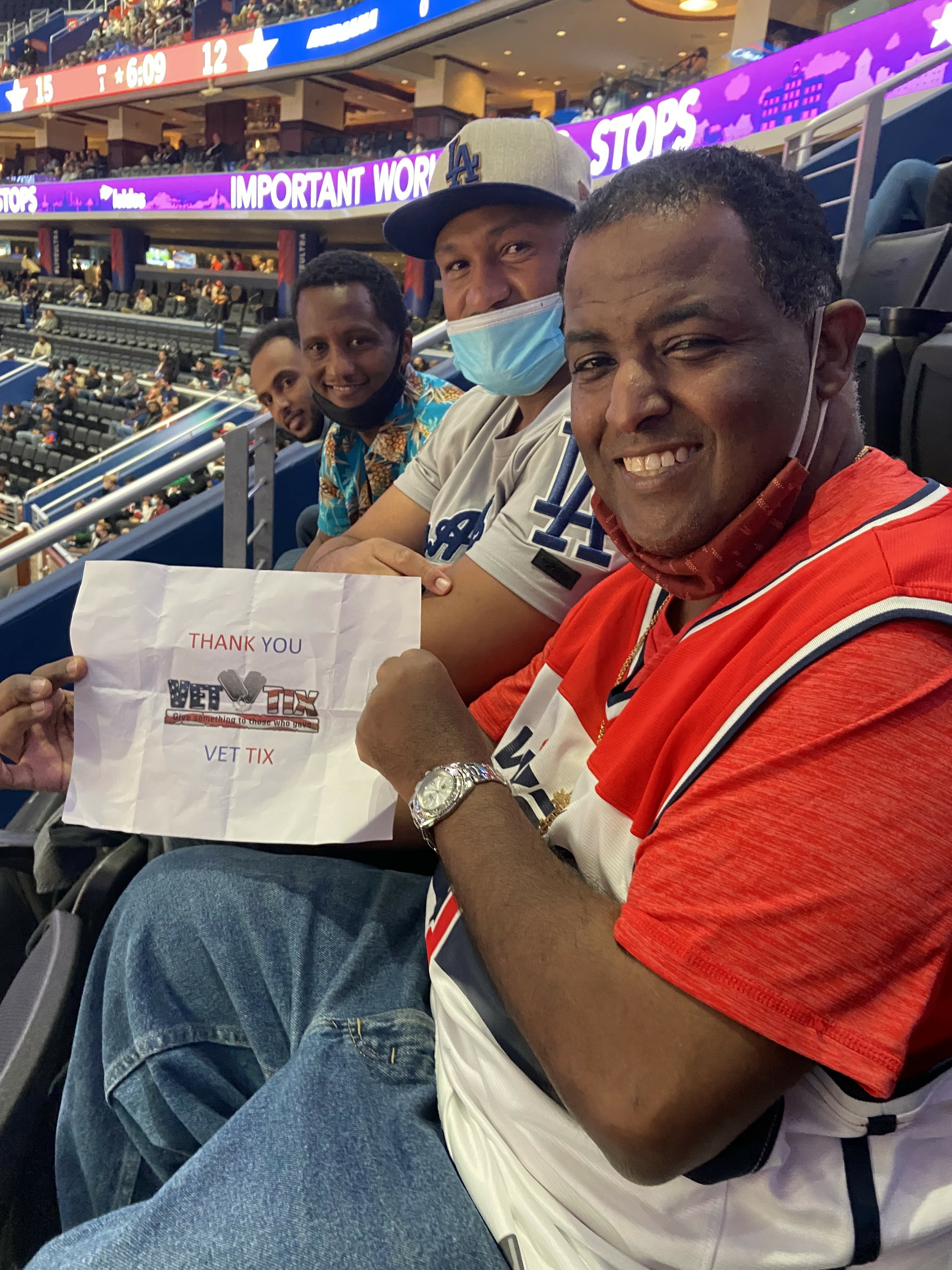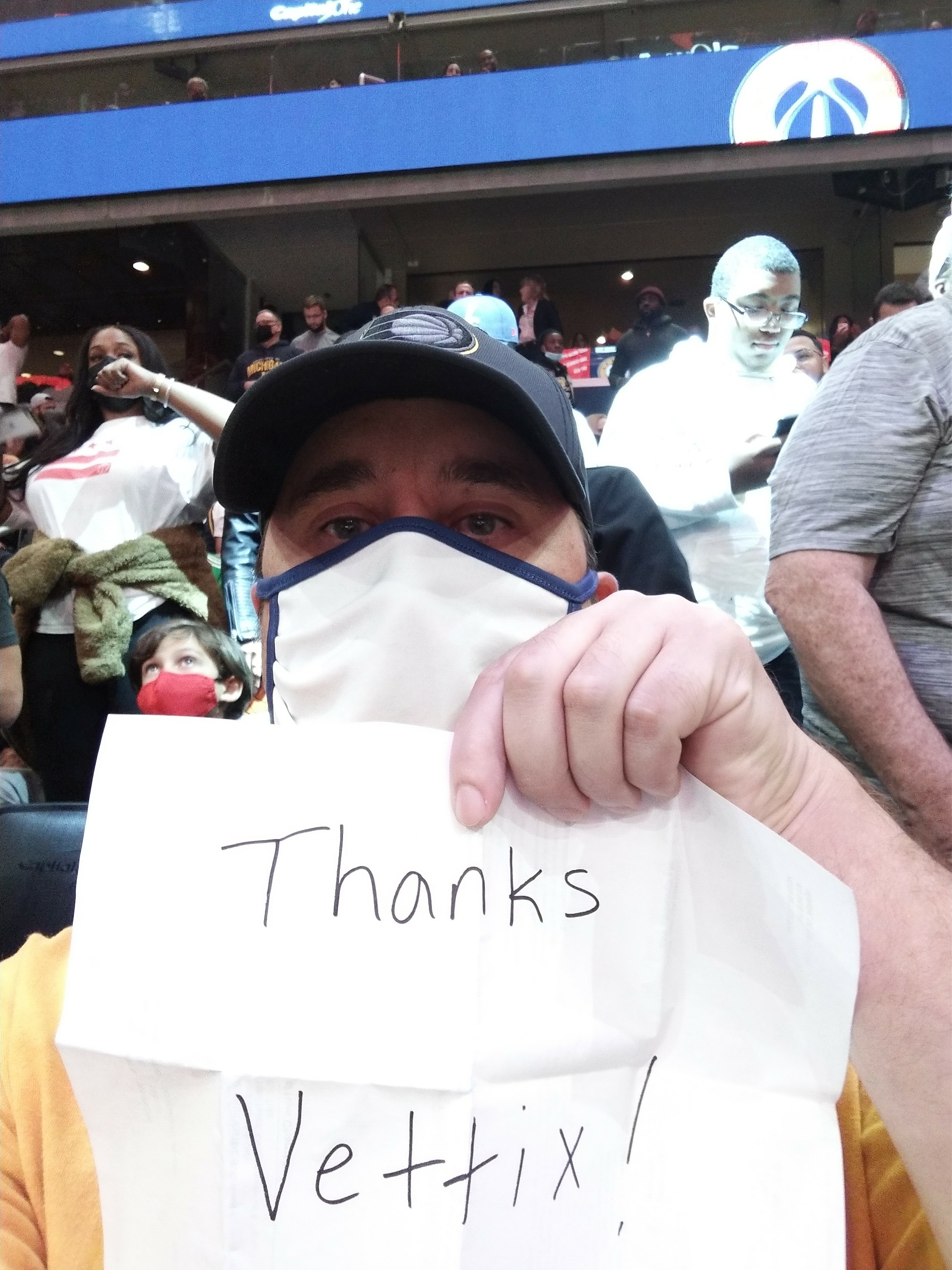 Thank you VETTIX, It was a great home opening win for the Wizards in overtime. Thank you for everything you guys do for the Veterans.