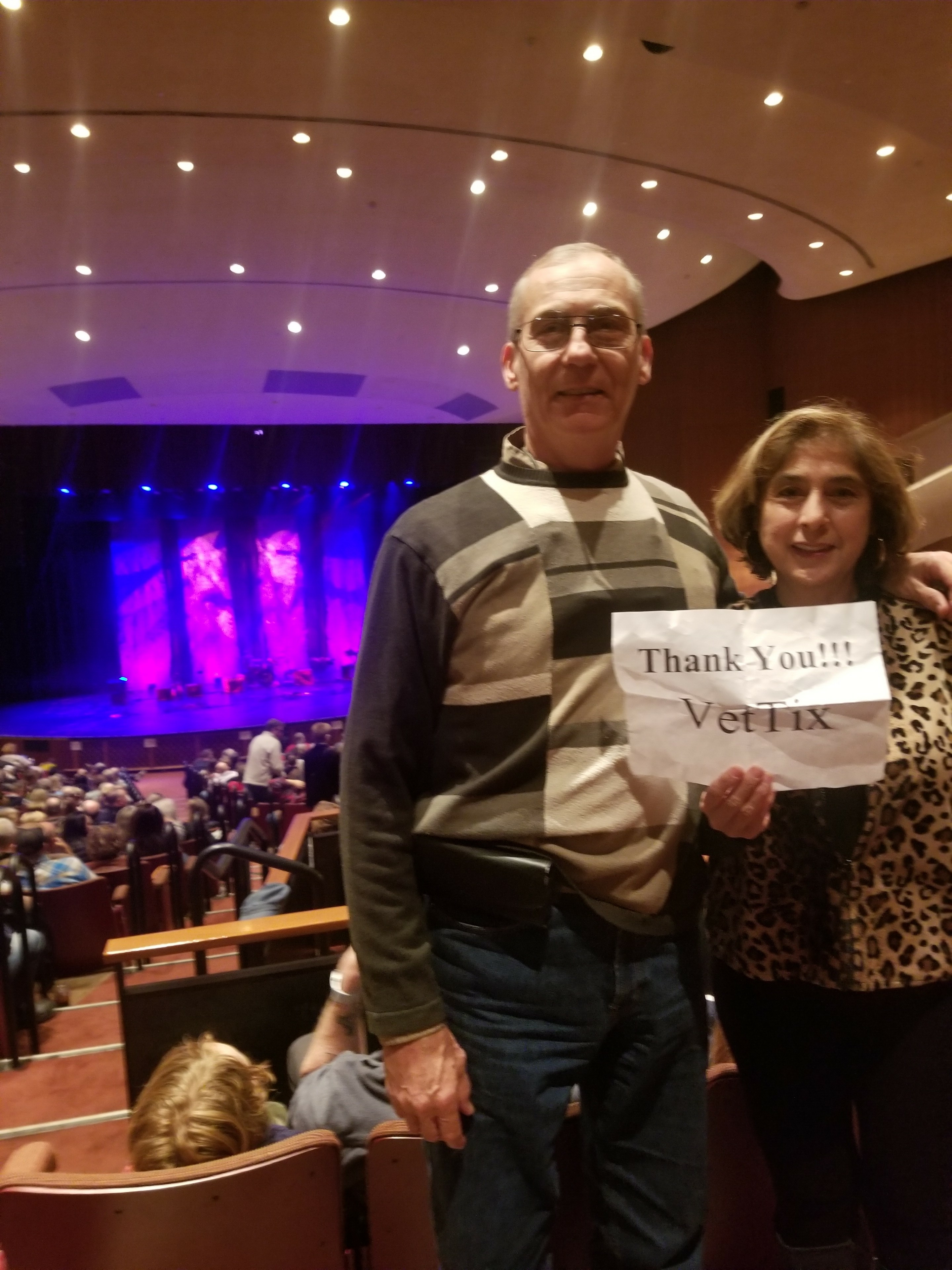 Thank you to VetTix and you generous donors for the tickets to enjoy Men at Work at the Chandler Center for the Arts. The concert was AMAZING and the lead singer hit every one of those classic, powerful notes. It is so nice to be able to enjoy concerts that we might not otherwise be able to attend and your kind donation is greatly appreciated.
