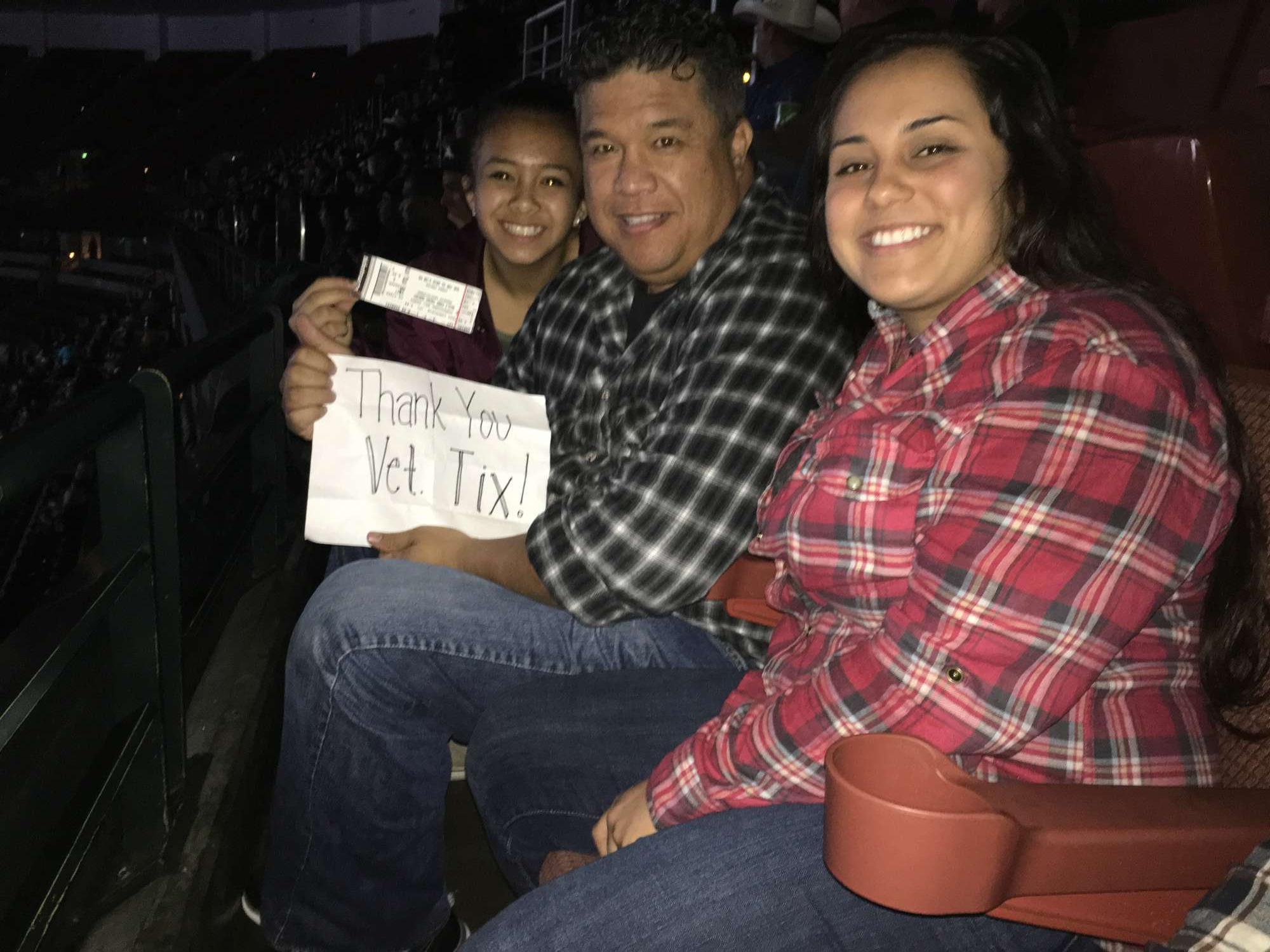 Thank you so very much to Vet Tix and Professional Bull Riders Inc. for an incredible experience! We couldn't have have asked for better seats. We were just a few feet away from all the action. This was our last family outing before my upcoming deployment and it was very special.