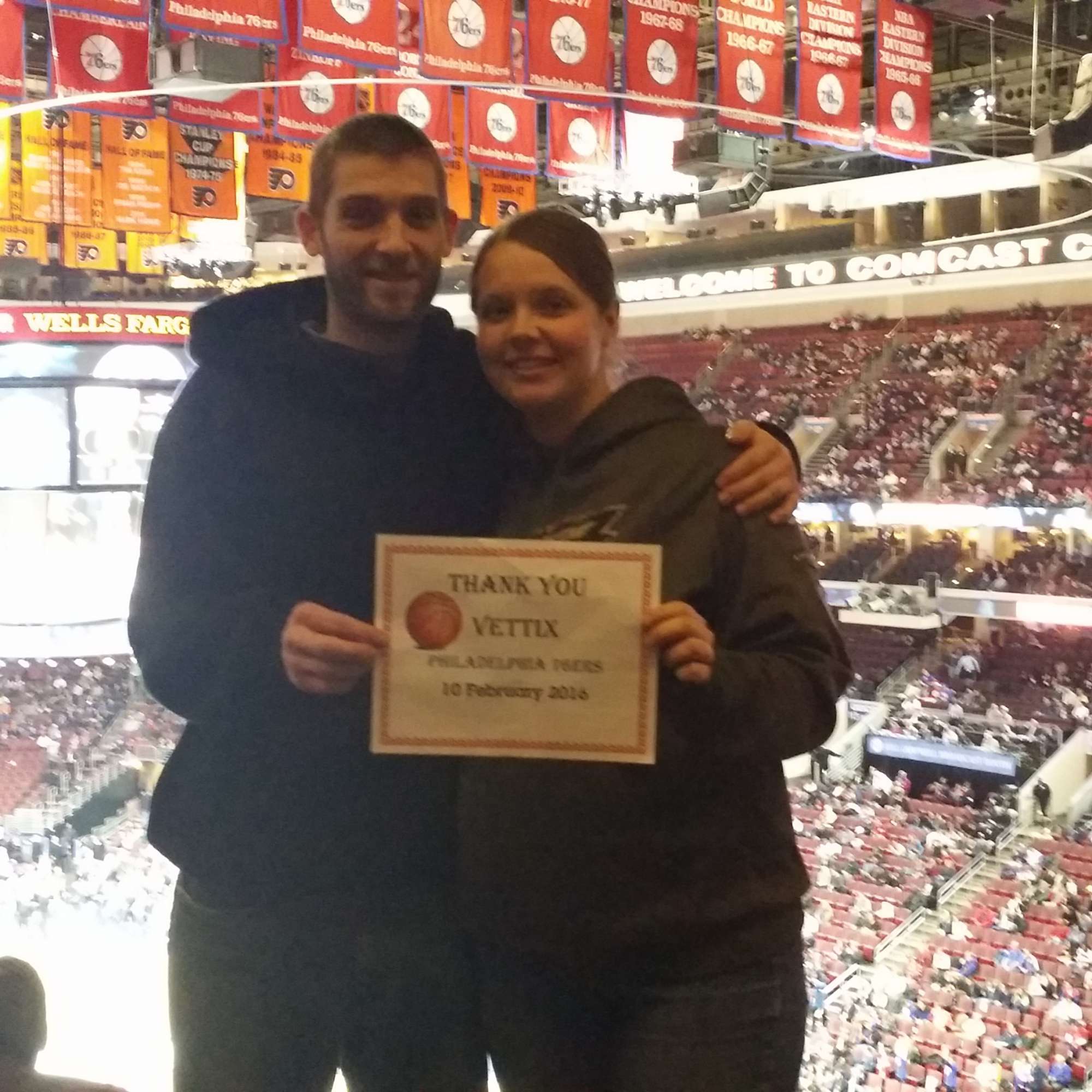 Thank you to Vet Tix and the Philadelphia 76ers for the tickets to the game. It was great coming out to see the Sixers play. Thanks for all you do for us Veterans.