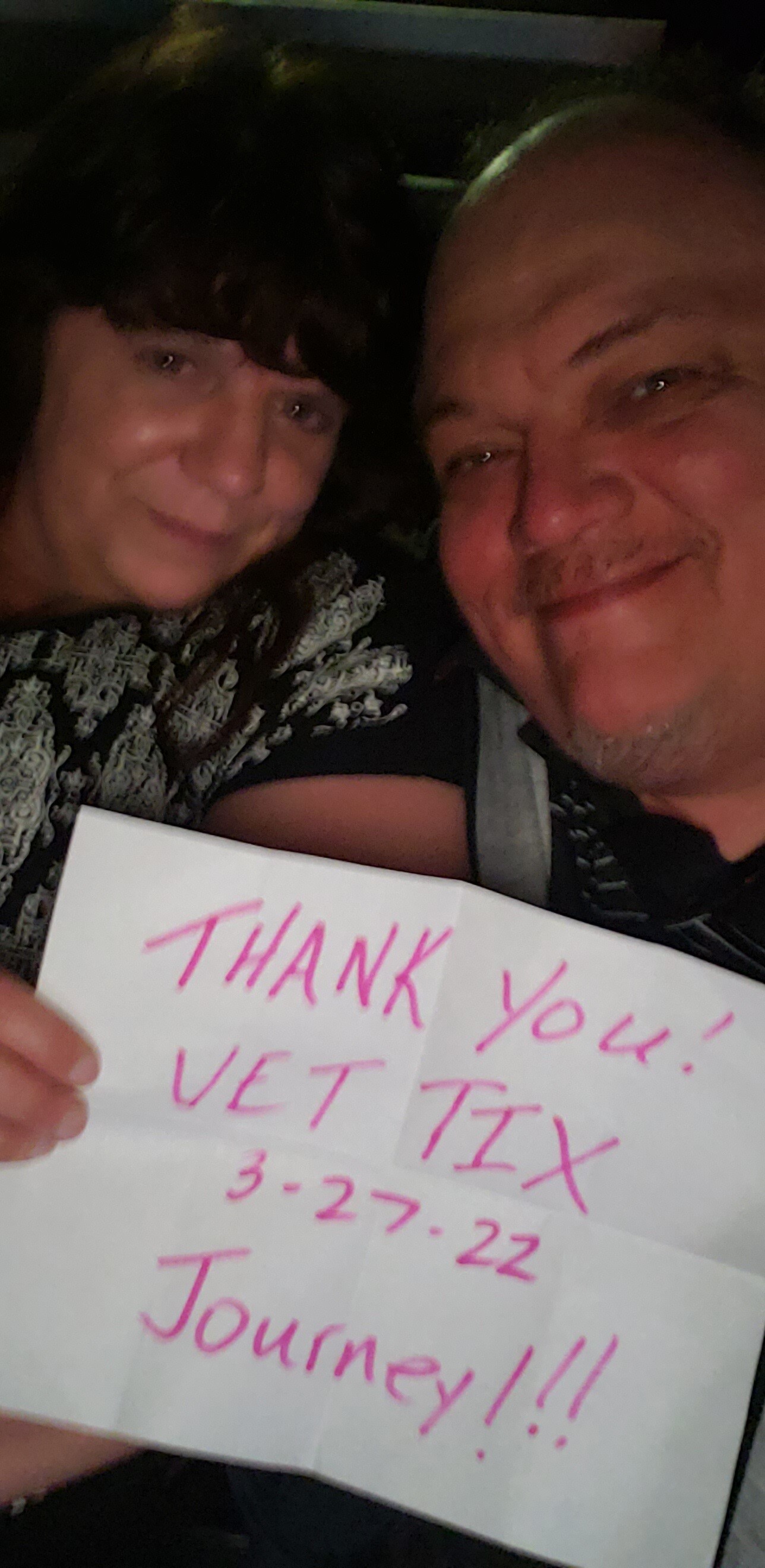 We cannot say thank you enough for this amazing opportunity!! My wife celebrated her 40th birthday in March 22nd. March 27th we were able to see ToTo and Journey! Thank you VetTix!!
