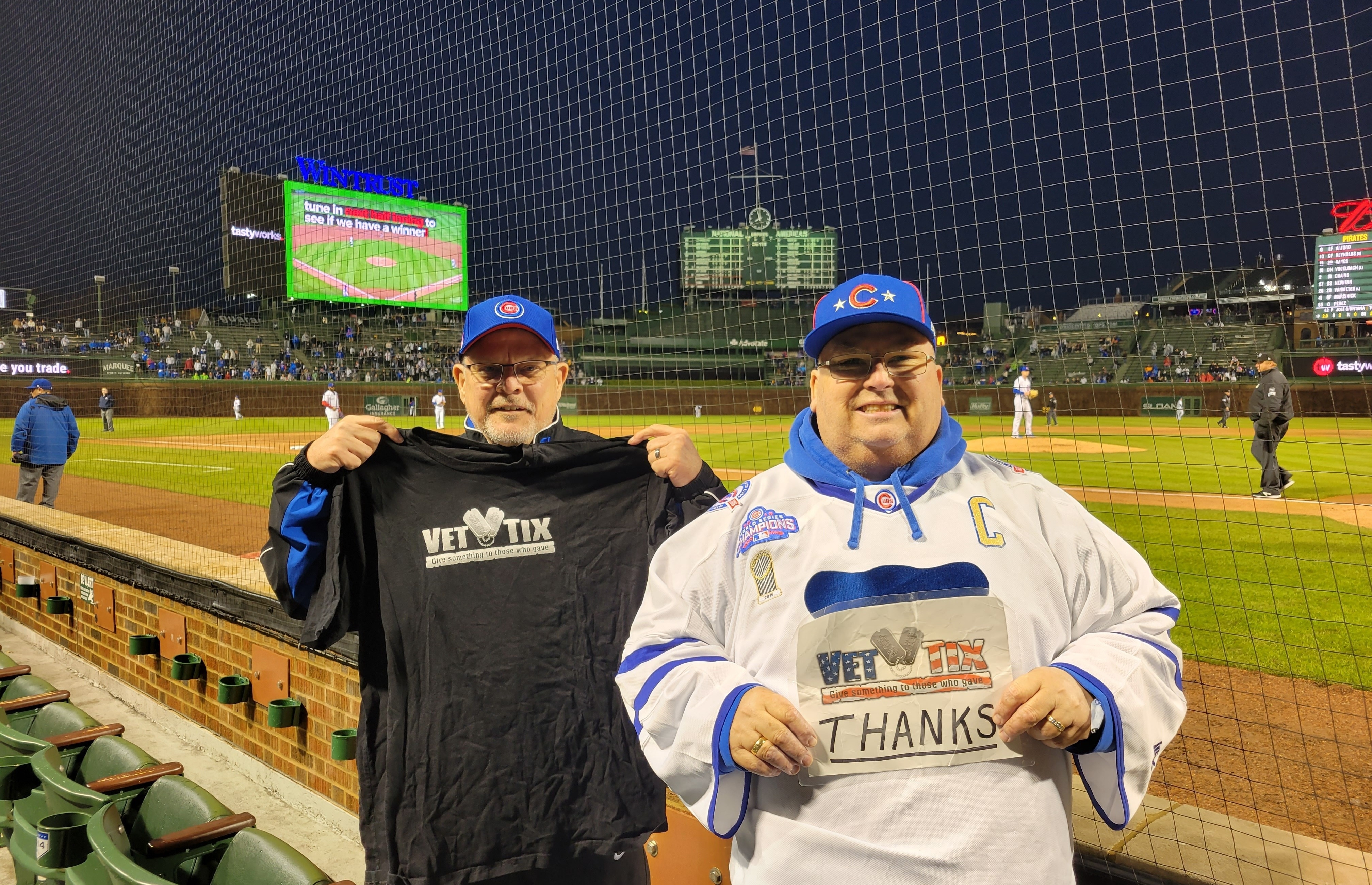 Thank you so much for these wonderful tickets to see the Cubs at historic Wrigley Field. What an amazing view we had!!! Thank you for your generous donation and for supporting Veterans!