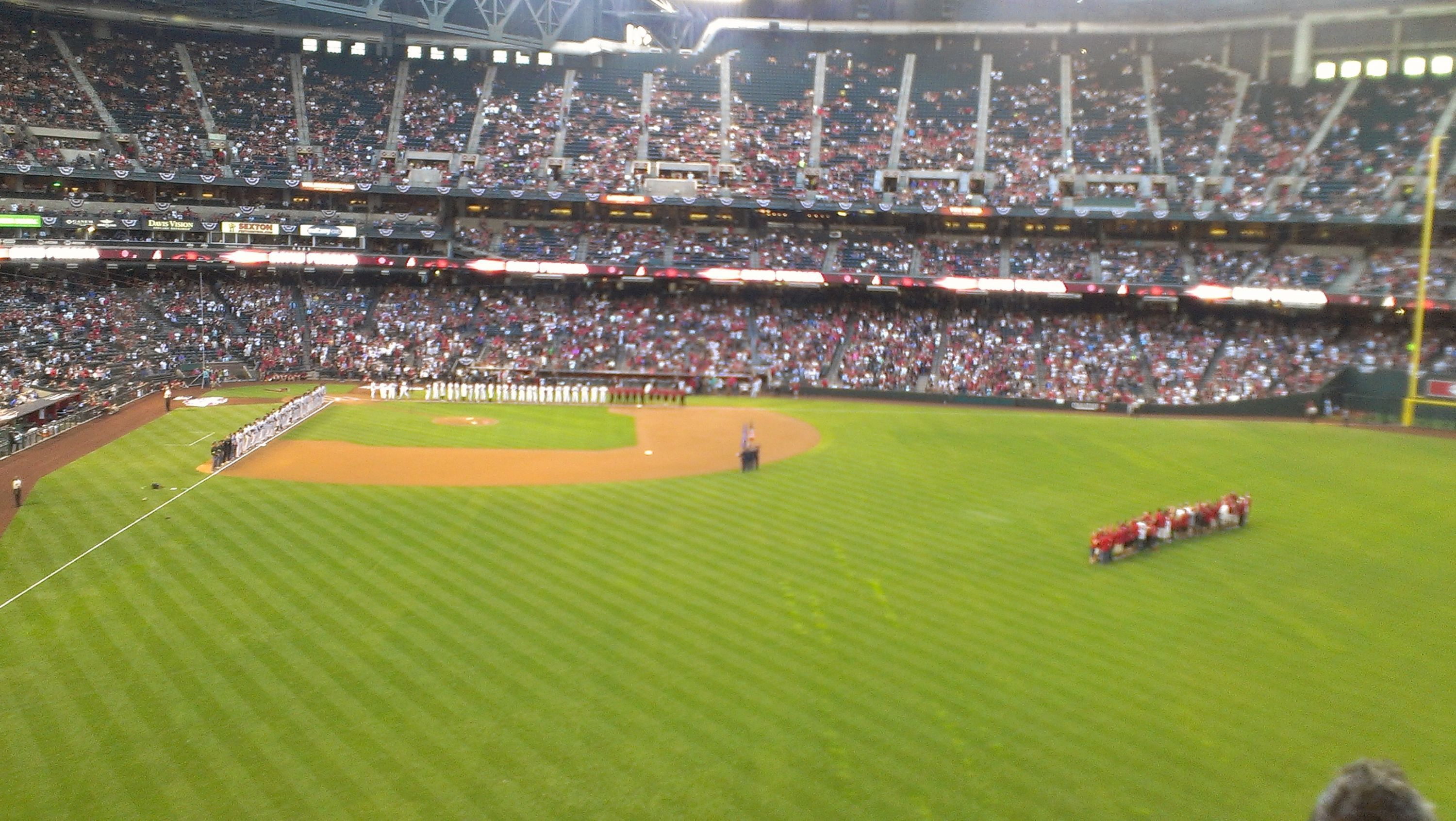 First Opening Day event ever for us. Thank you AZ D-backs for making this possible. Looking forward to a strong season even though the first day was a bit of a struggle. Those F-35's coming in tardy started things off on the wrong foot. Guess the Navy should get the call next year huh? GO NAVY!