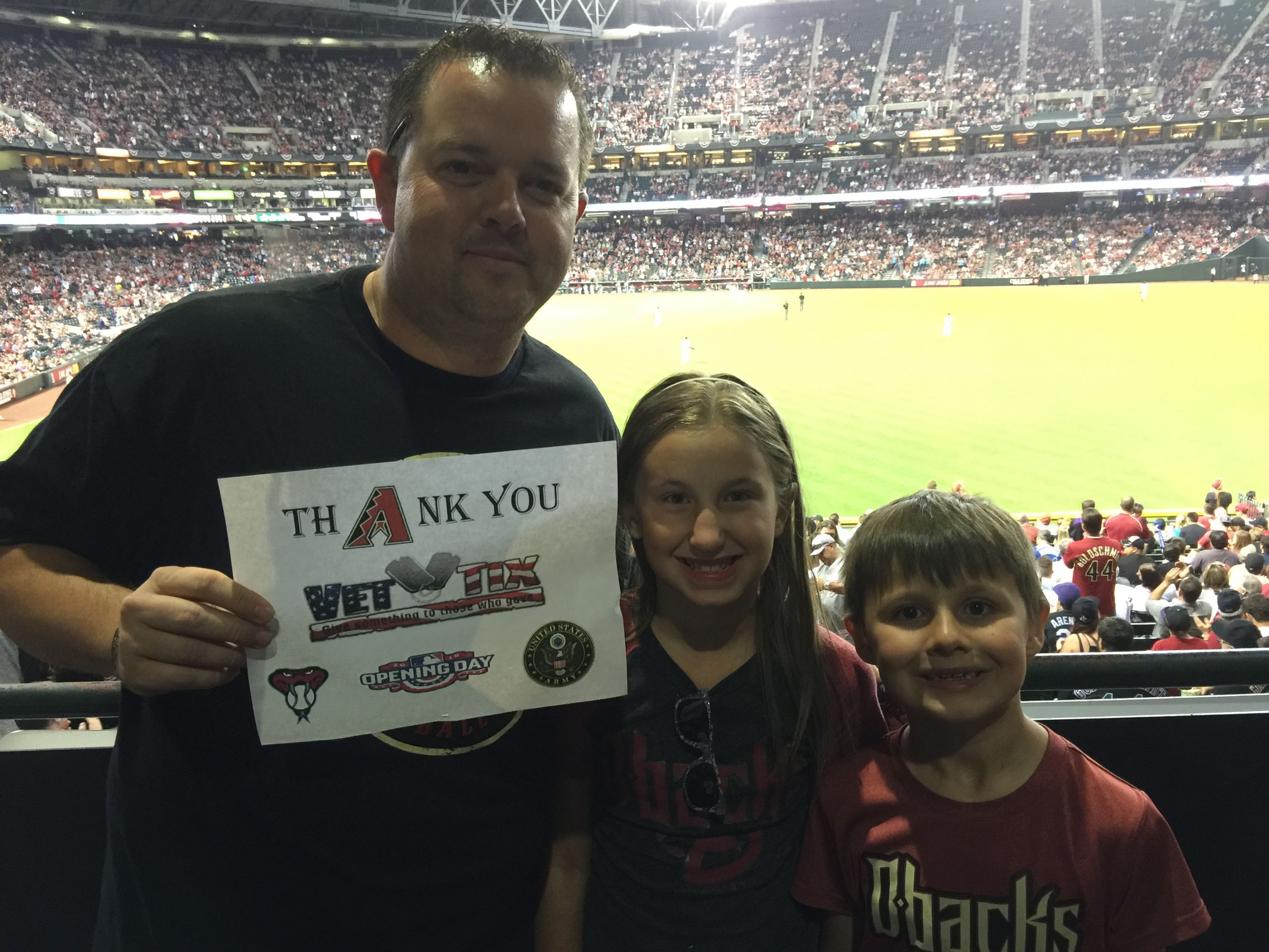 I would like to say Thank You to the Arizona Diamondbacks for providing me and my family with tickets to the home opener against the Rockies. As always, we had a blast and enjoyed every minute of the game and look forward to making a bunch more throughout the season. Again, Thank You to the Diamondbacks, and Vet Tix for making events like this possible.