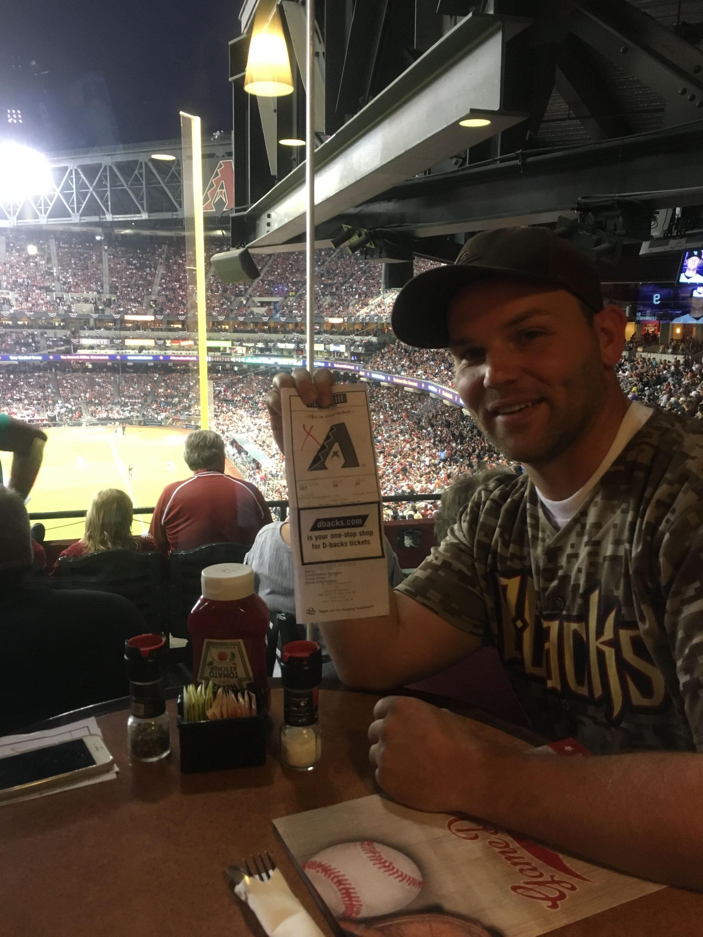 Although the Colorado Rockies humiliated the Diamondbacks and Zack Greinke on opening day with homers, I enjoy the excitement in anticipating a successful season for the Diamondbacks while spending quality time with family and friends at the evening game. I want to thank the Arizona Diamondbacks organization for providing excellent seats to the game and the Veteran Tickets Foundation for providing opportunity to veterans to attend the game.
