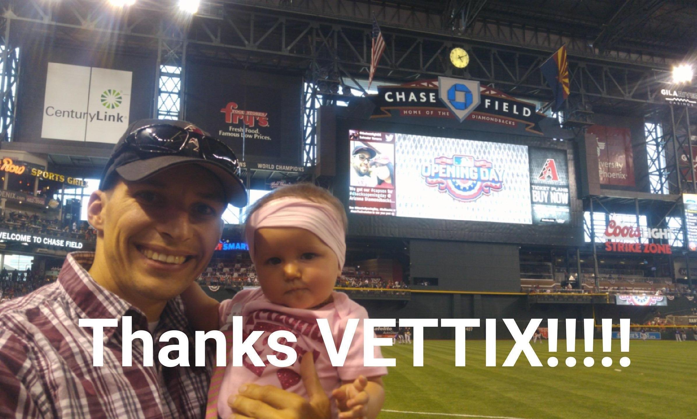 Thank you so much vettix and the Arizona Diamondbacks for a fun and memorable night with the family. We had a blast and got plenty of pictures of our 8 month old daughter smiling from ear to ear.
