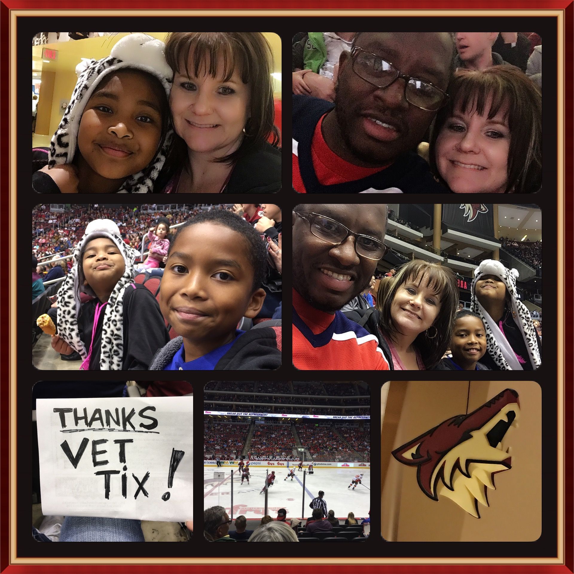 Thank to Vet Tix , me and my family had a Awesome time at the Arizona Coyotes NHL game.