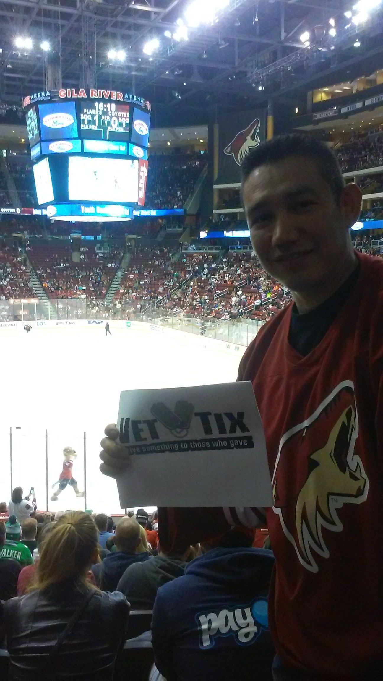 Thank you Arizona Coyotes and Vet Tix for the chance to see a Coyote NHL game. Had a ton of fun and greatly appreciate it. Thanks again.