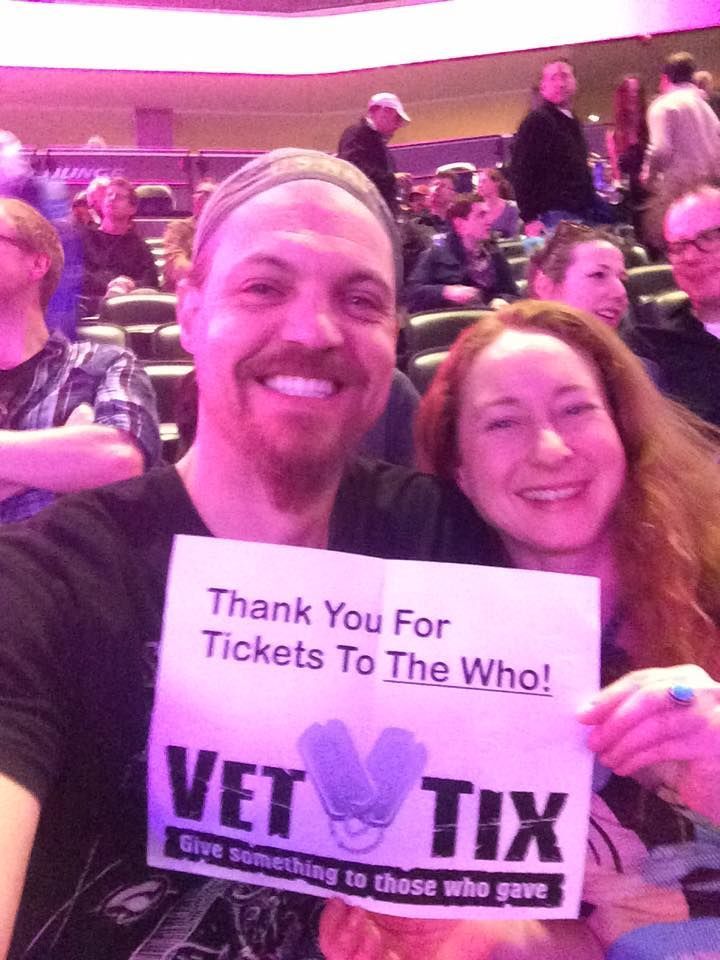 My wife and I would like to thank Vet Tix and the donors for The Who Hits 50 tickets! The concert was fantastic and the seats were great! She and I don't get out to these events much due to the cost and inconvenience but the donation was nothing short of awesome and greatly appreciated. Thank you!