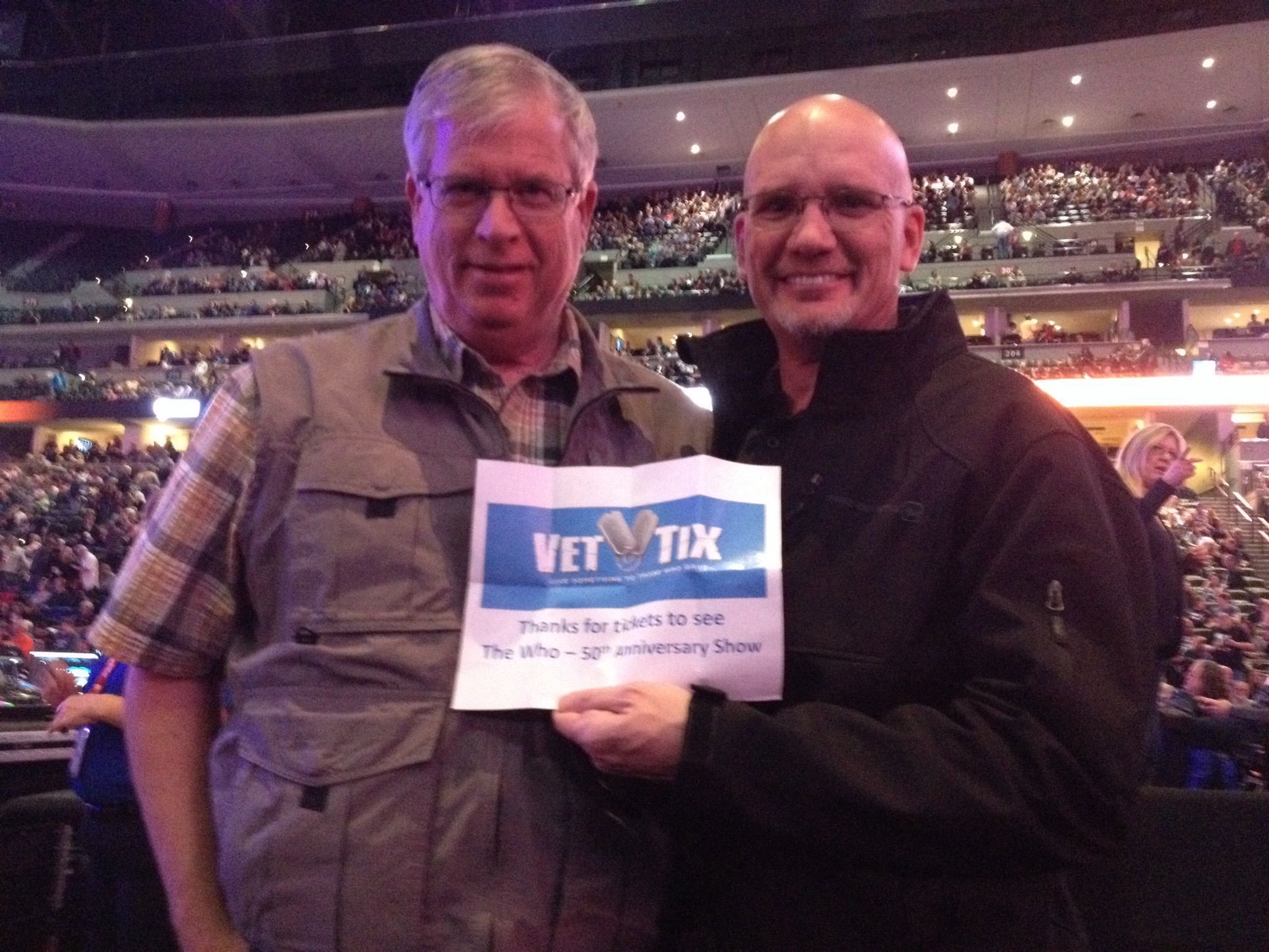 I want to thank Vet Tix for everything they do for veterans. Without their help, veterans from all services would not be able to enjoy the events donated by some wonderful people. The WHO concert was awesome and could not have been any better for their last concert in Colorado. Thanks gain Vet Tix for such a great night.