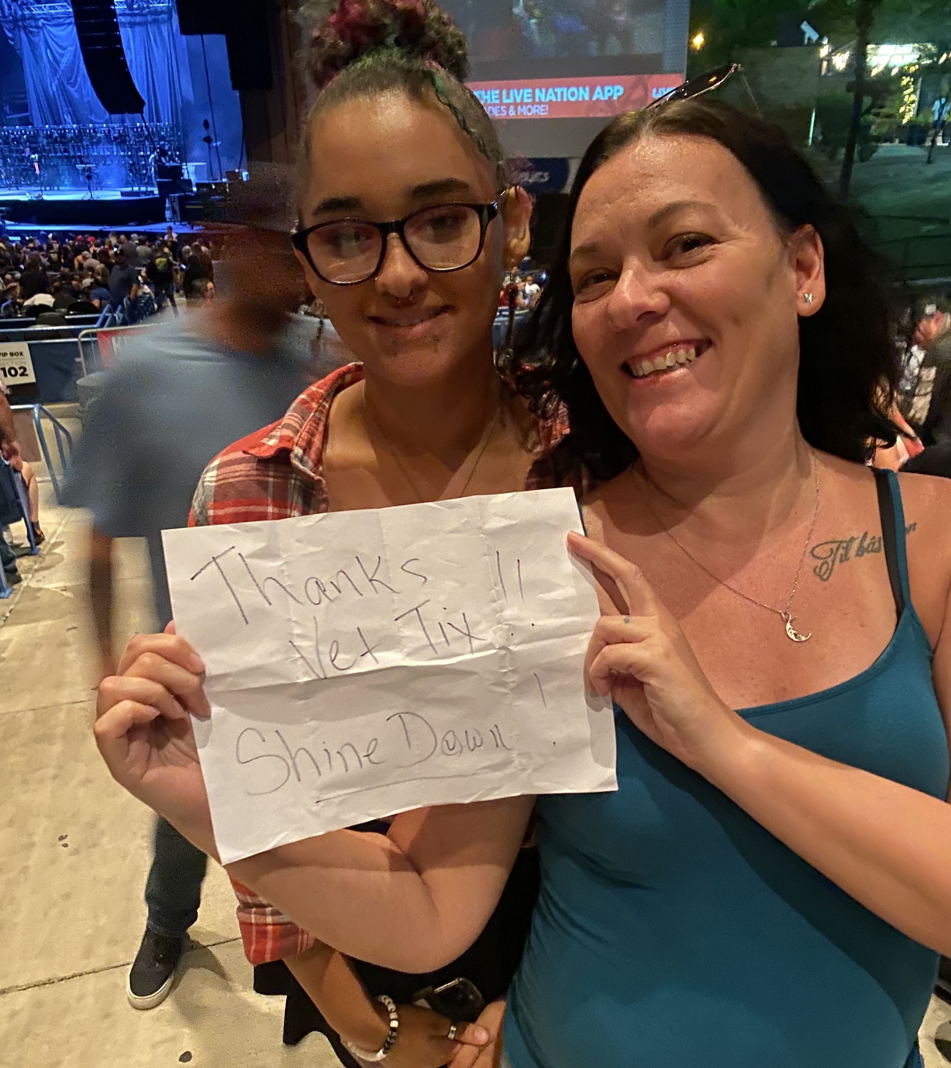 Thank You, Thank You, Thank You Live Nation!! What a great time seeing Shinedown, My favorite band!! Please know that your contribution to Veterans is greatly appreciated.