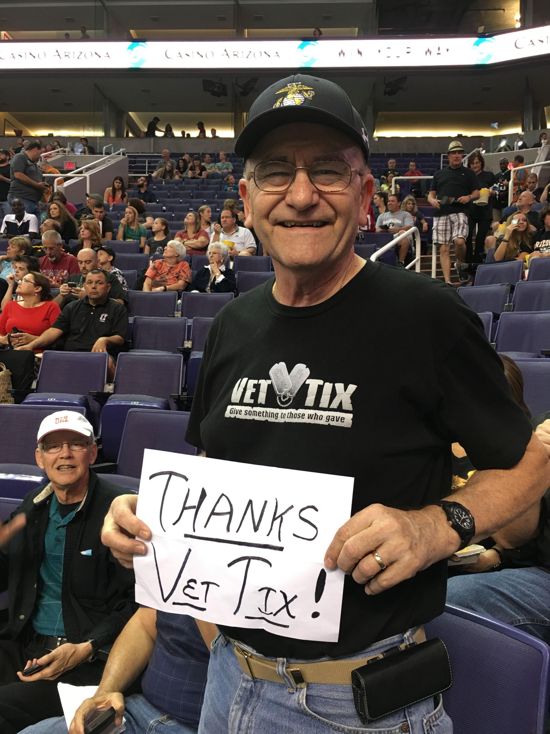 Thank you Phoenix Suns for the tickets to see the Rattlers play. My daughter and I had an awesome time. The game was exciting and fun to watch. Also, thanks to the Vet Tix organization for the great job that they do each day for us Veterans. We appreciate it.