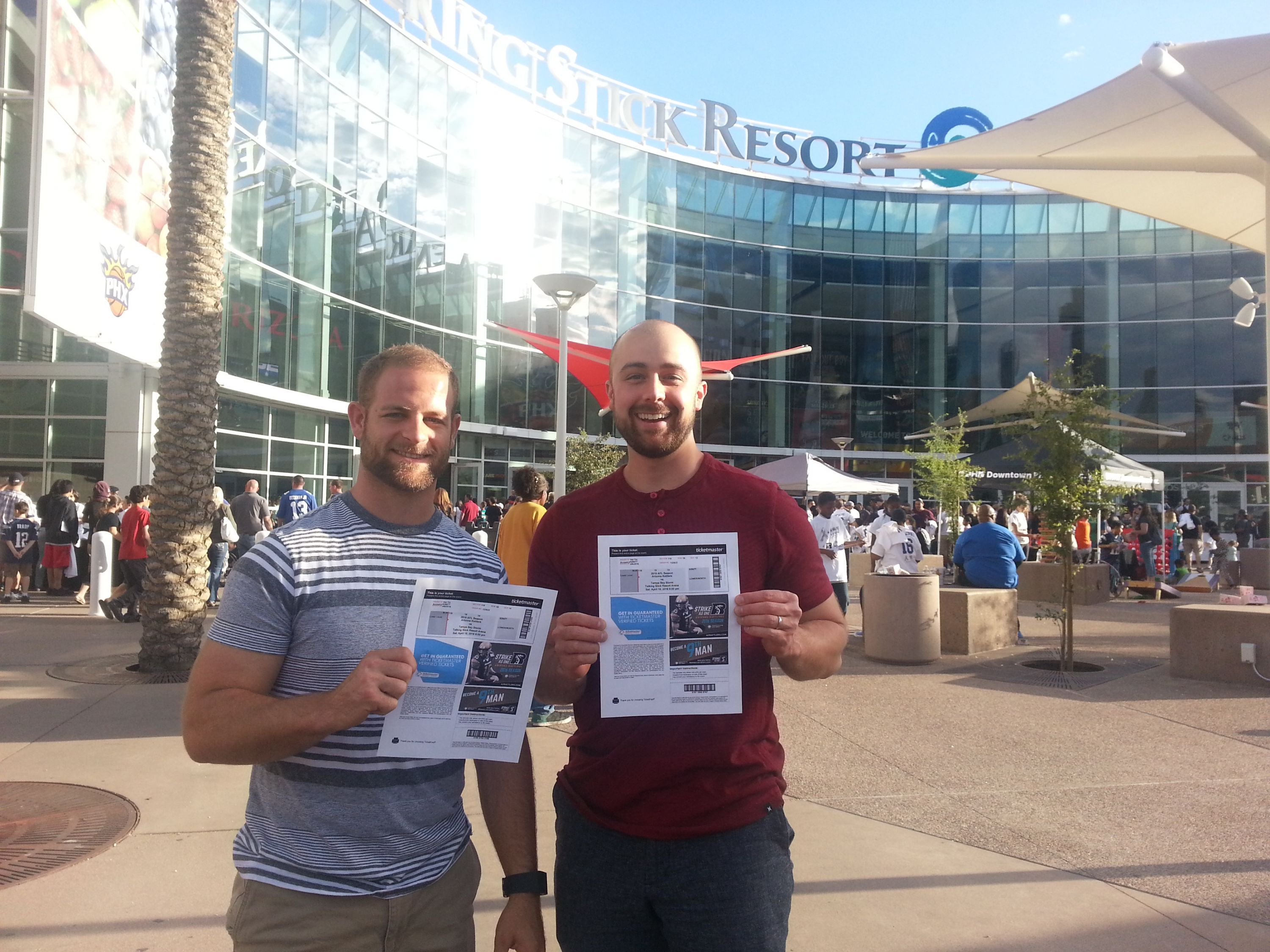 I took my son and two good friends we had awesome 4th row end zone seats! The AZ Rattlers won the game. Thanks Vet Tix!