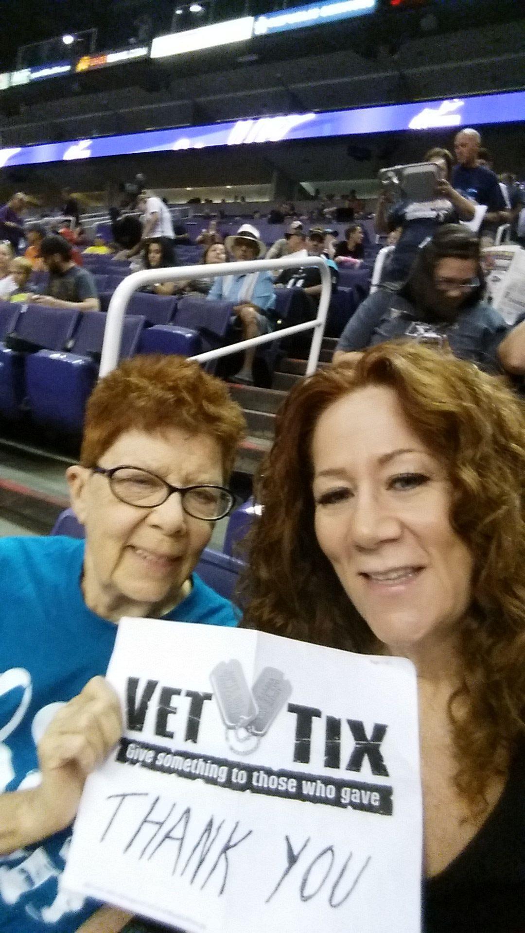 Thank you so much for the Rattles tickets! We had a wonderful time and the seats were awesome ! We appreciate your donation Phoenix Suns and support of veterans. Thank you and God bless!