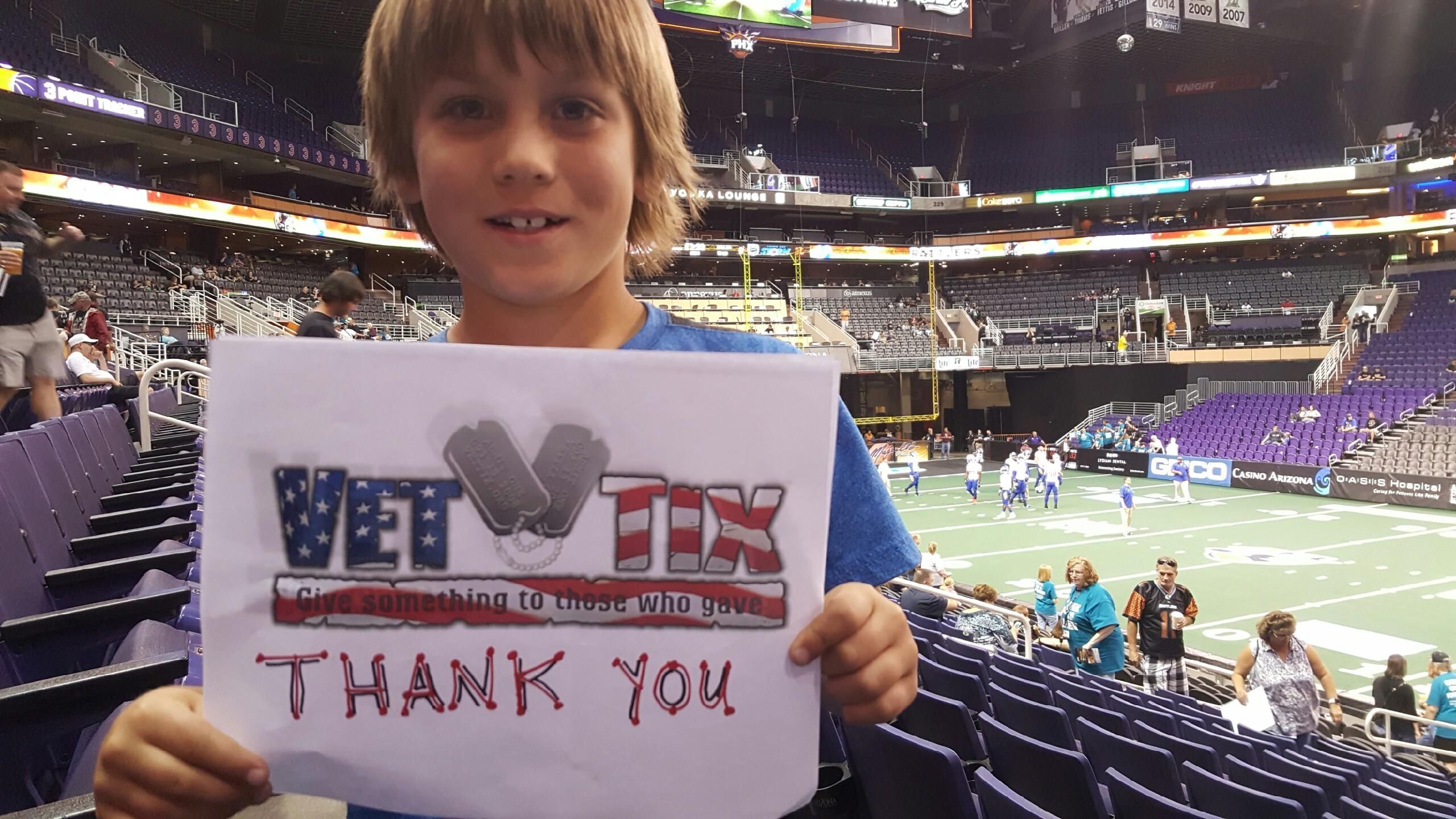 Thank you Phoenix Sunset NBA and vettix for another great night. Arena football is so much fun and the kids love it! Thank you for supporting vets!
