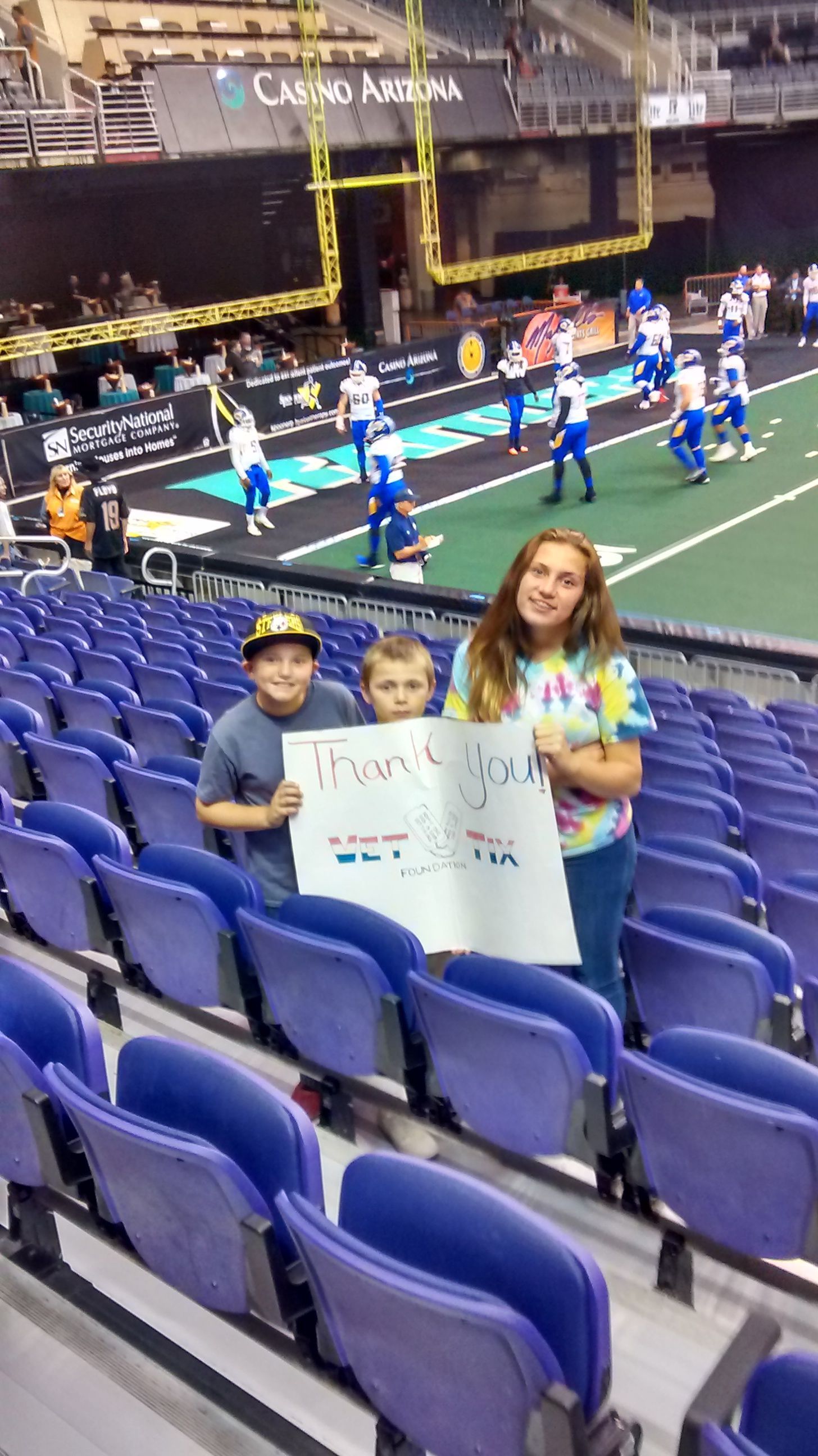 Thank you so much Arizona Rattlers, The Phoenix Suns (NBA) and VetTix! The Rattlers are a winning team and I hope the rest of the valley has a chance to see them play. We had a great time at the game!