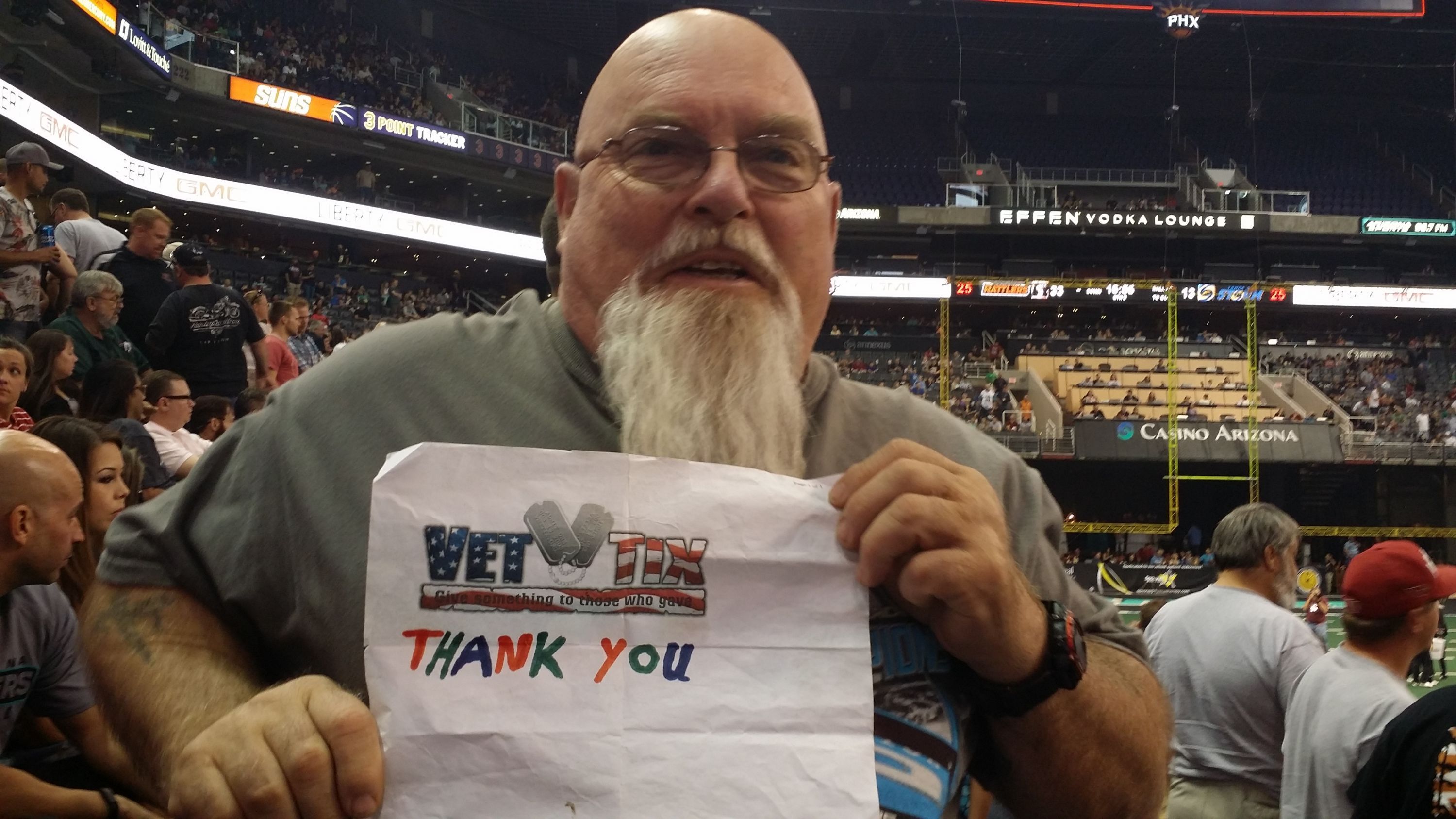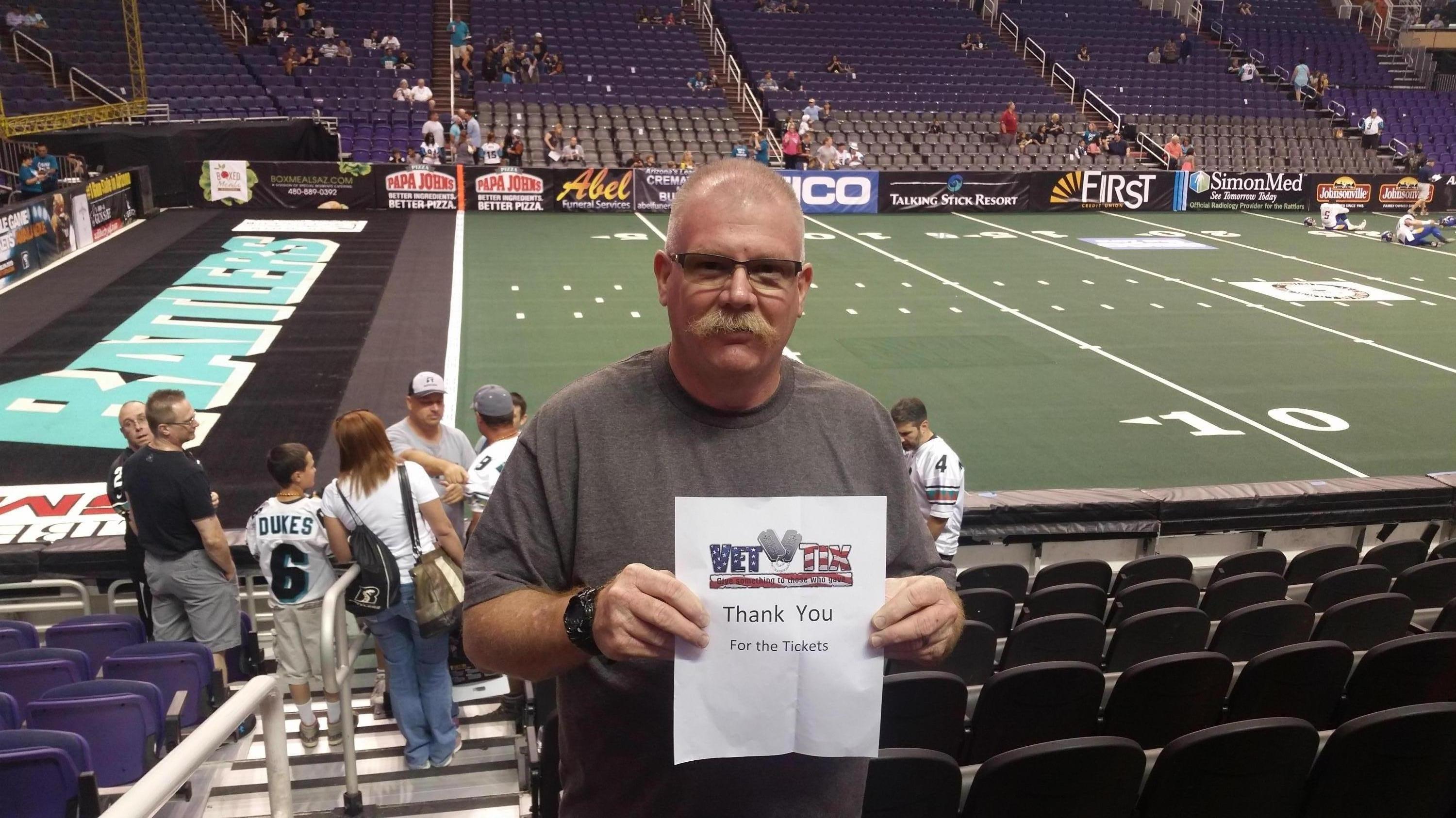 Thank you Vet tixs and Phoenix suns for the great seats to the Arizona Rattlers!!! My wife and myself had a wonderful time at the game.