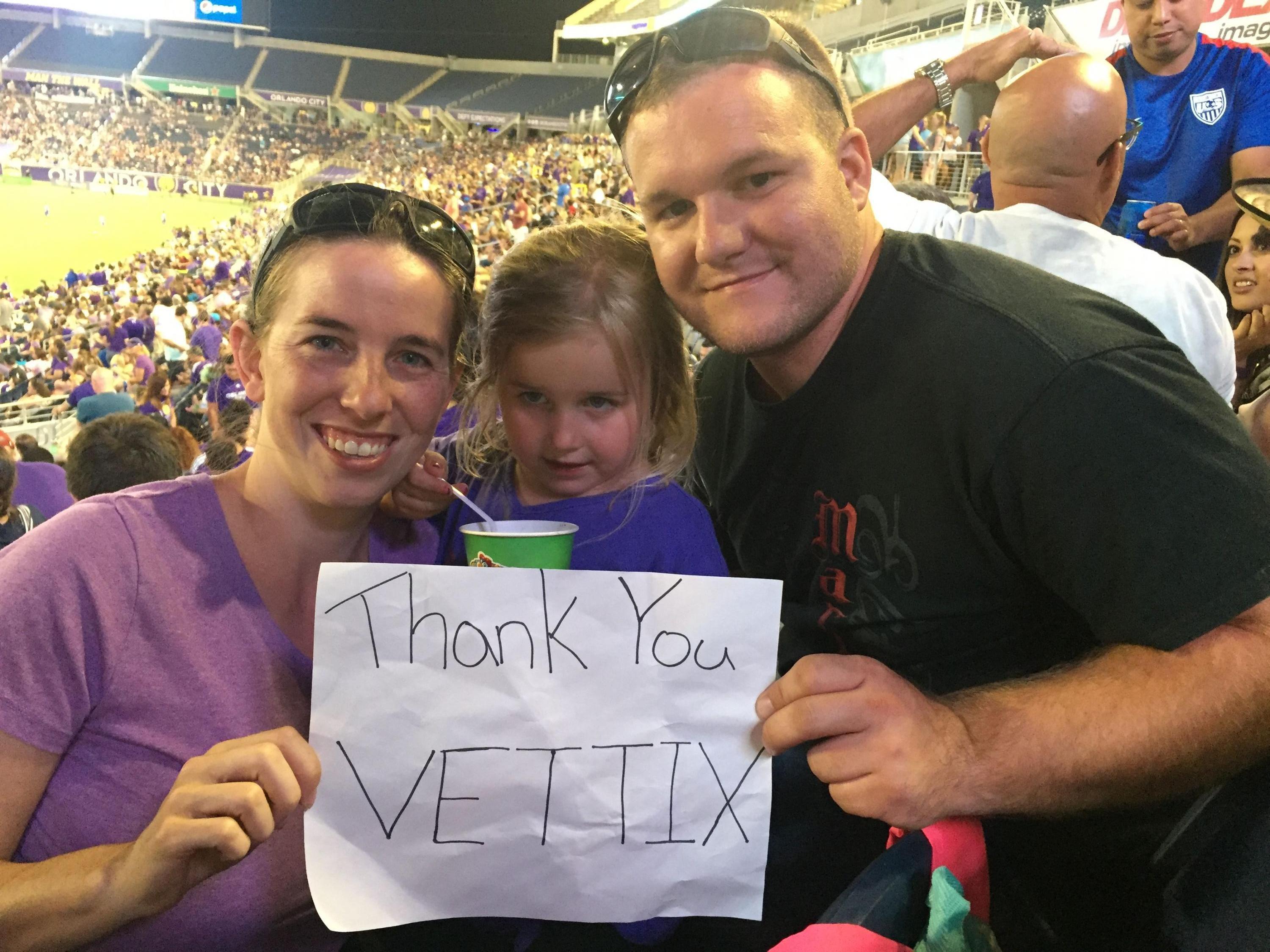 On behalf of my family, I would like to say thank you Orlando City FC -MSL for providing us with the opportunity to experience this great event. I would also like to thank VetTix for providing all military Veteran the opportunity to attend this and other events. It means the world to us to know there are still genuine people in this world. Thank you! Dejesus Family